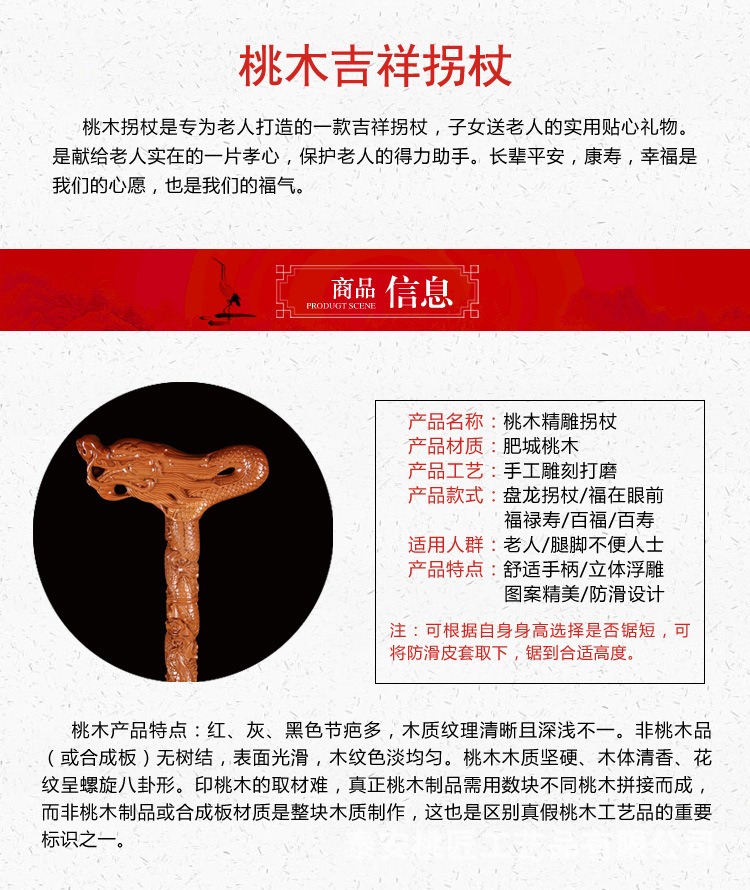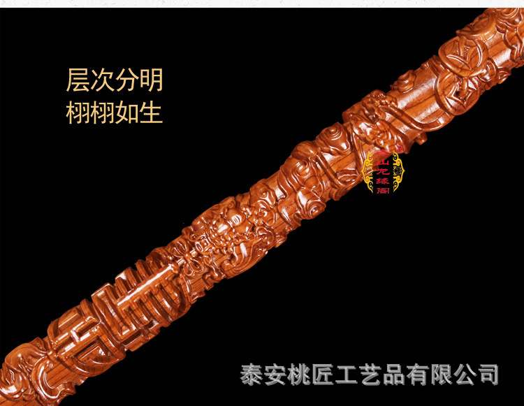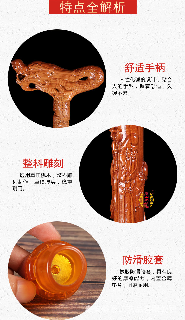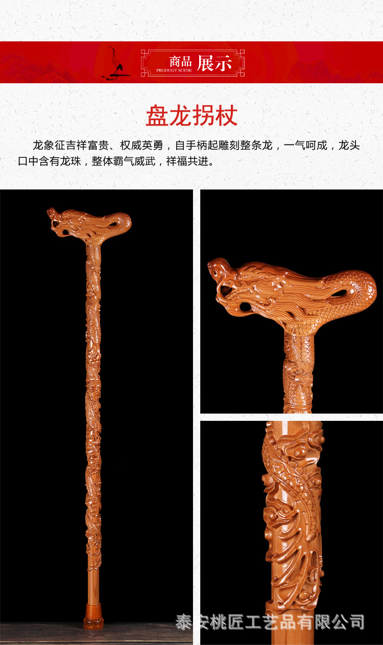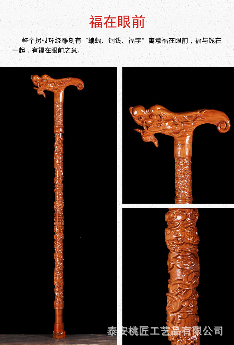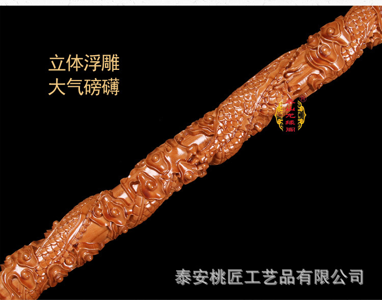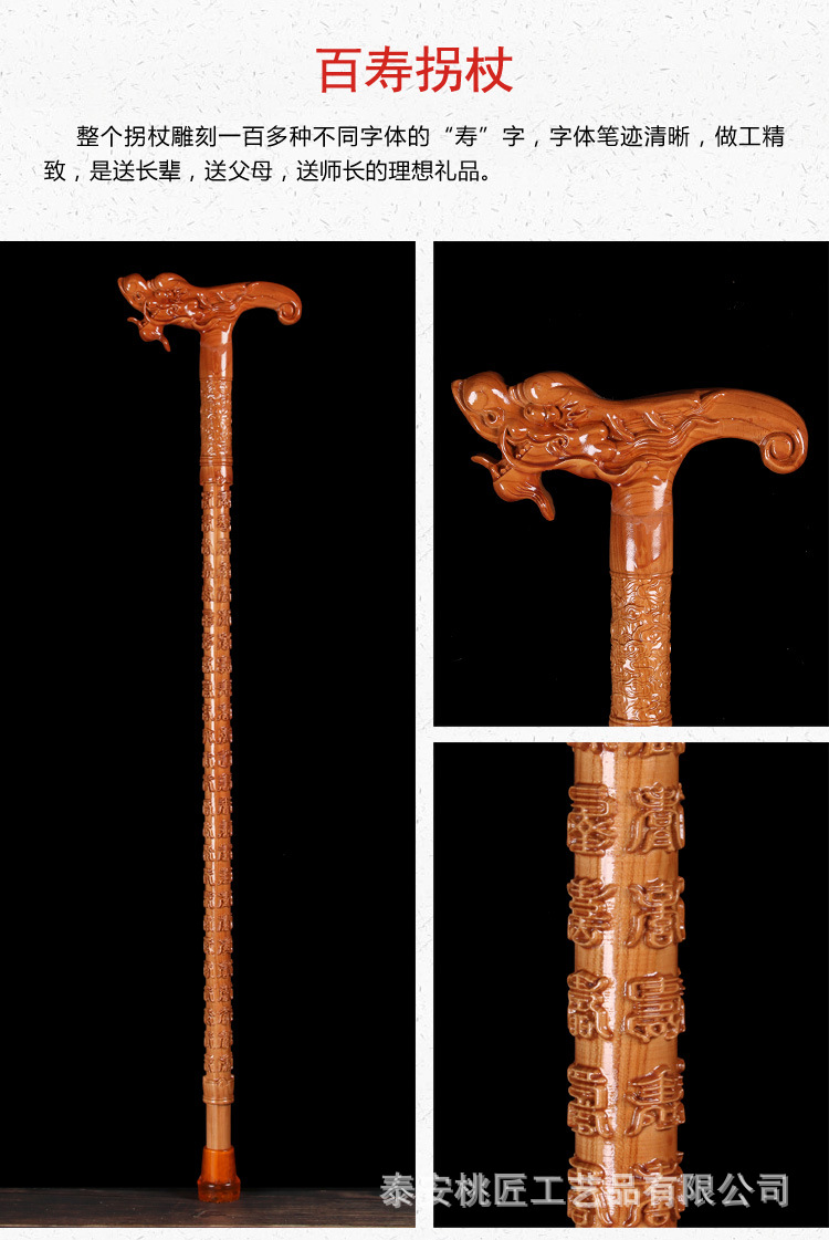 노인 단단한 나무 복숭아 나무 조각 공예품 Fu Lu Shou Panlong 제조업체를위한 복숭아 나무 꼭지 목발 목발 지팡이스토어 가기