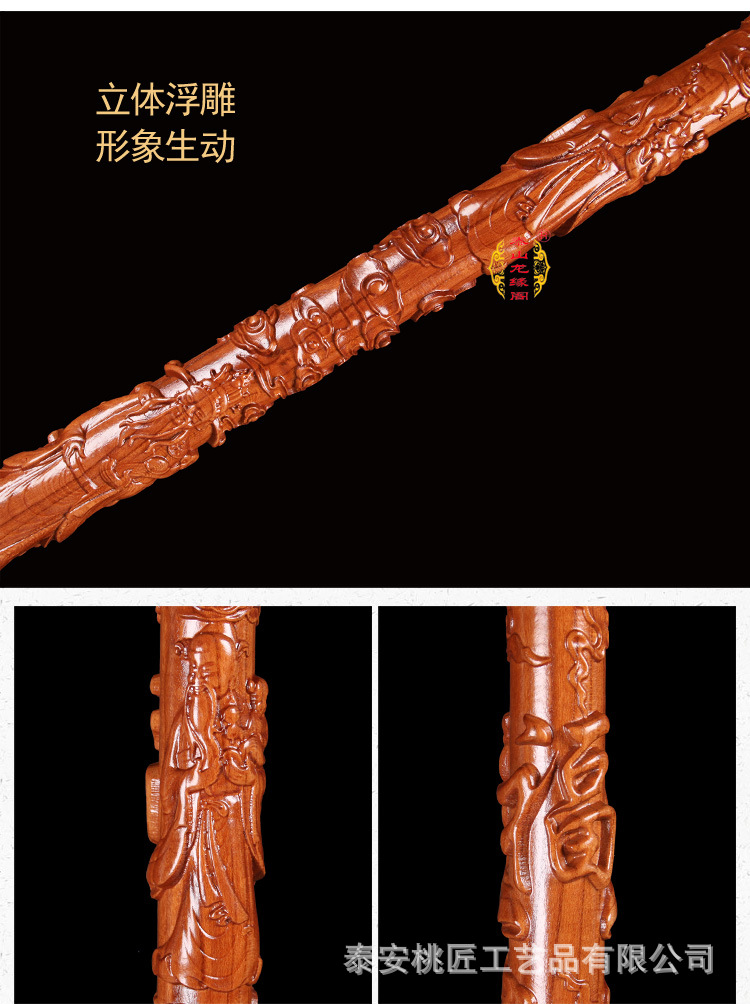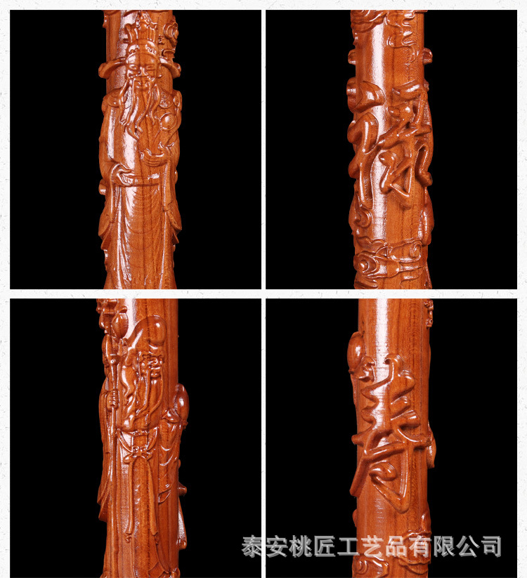 노인 단단한 나무 복숭아 나무 조각 공예품 Fu Lu Shou Panlong 제조업체를위한 복숭아 나무 꼭지 목발 목발 지팡이