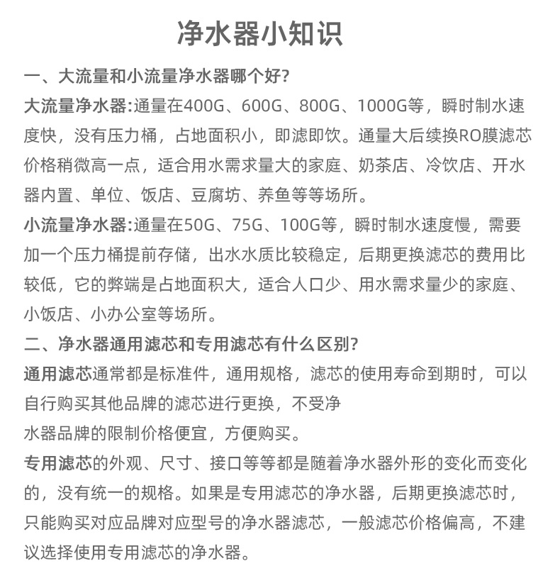 가정용 직수형 정수기 RO 역삼투압 순수기 수도 필터 주방용 상업용 대용량 정수기