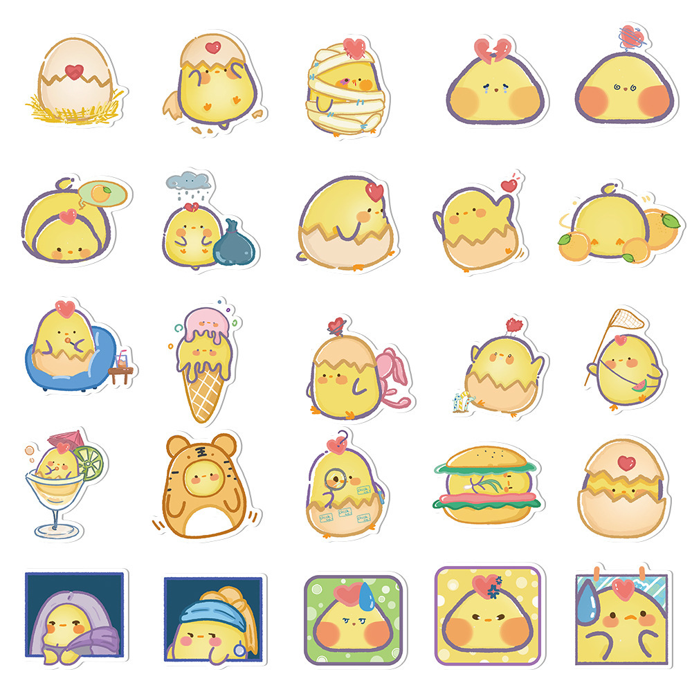 슈퍼 비용 효과적인 100 귀여운 만화 노란색 치킨 스티커 창조적 인 성격 장식 DIY 손 책 iP 배치스토어 가기