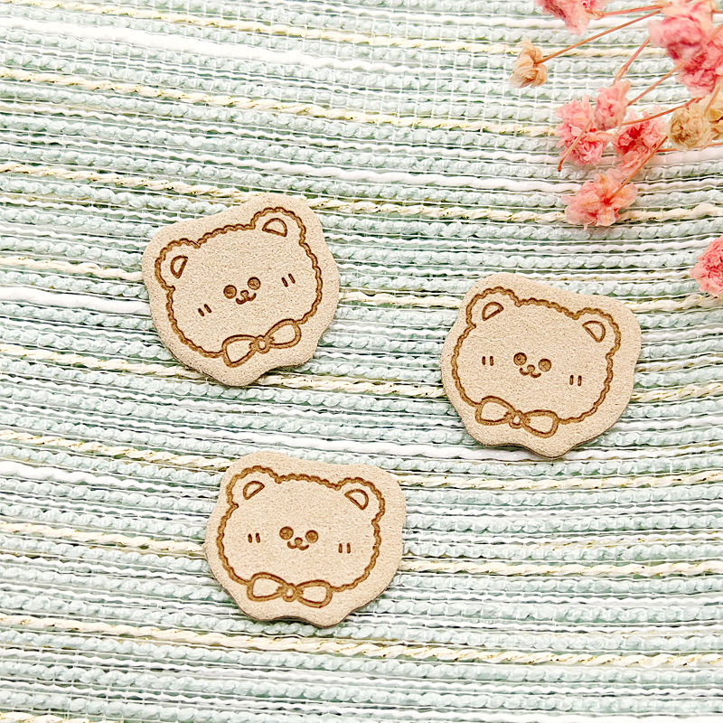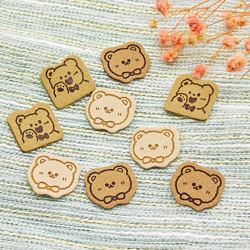 마이크로 화이버 가죽 라벨 모방 Deerskin 양털 부드러운 가죽 라벨 양각 수제 곰 머리 가죽 라벨 어린이 의류 액세서리스토어 가기