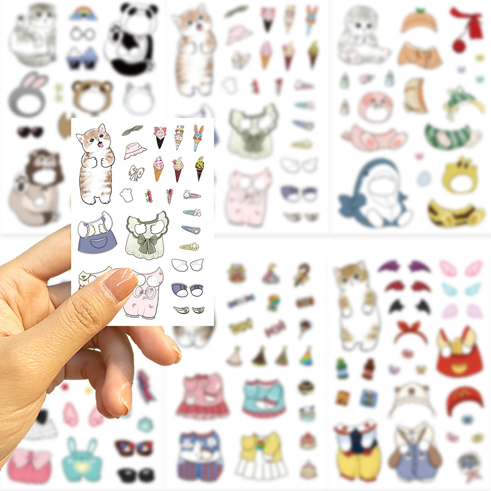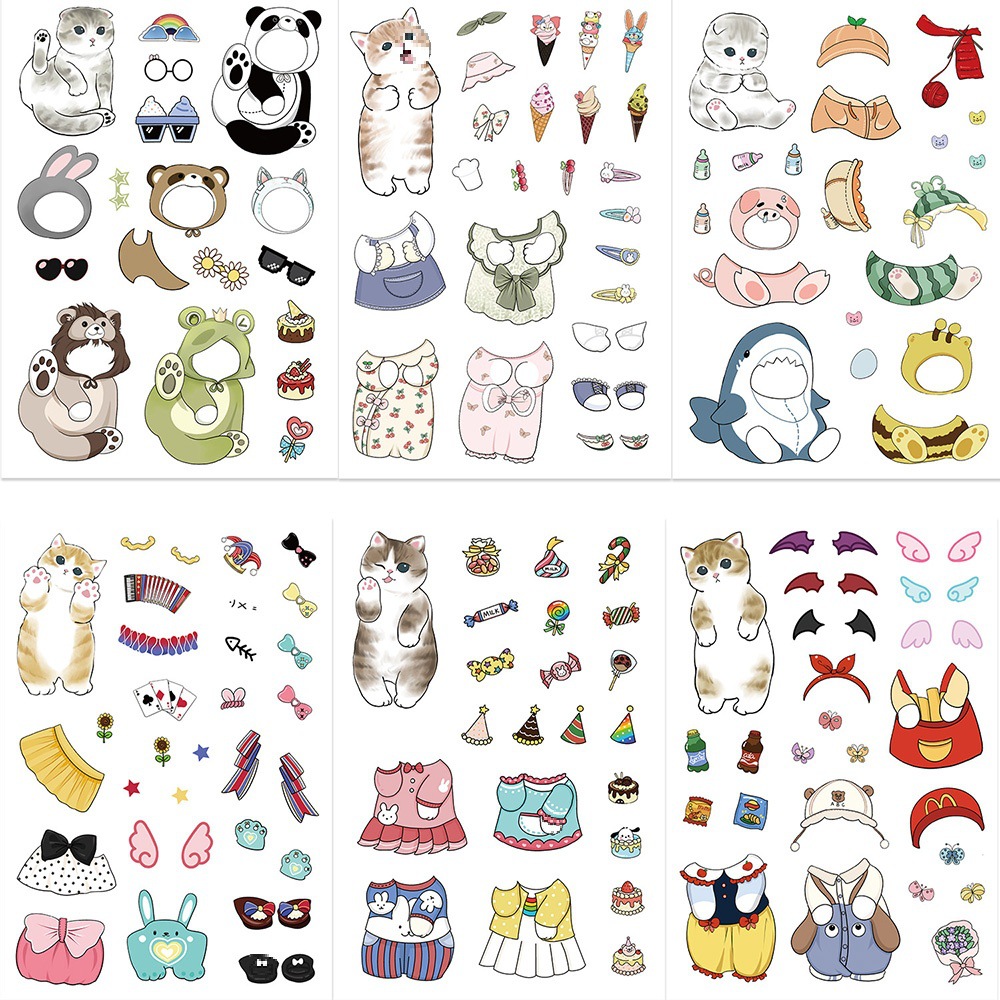 슈퍼 비용 효과적인 16 만화 귀여운 고양이 잠옷 퍼즐 스티커 바람 어린이 장난감 창조적 인 배치