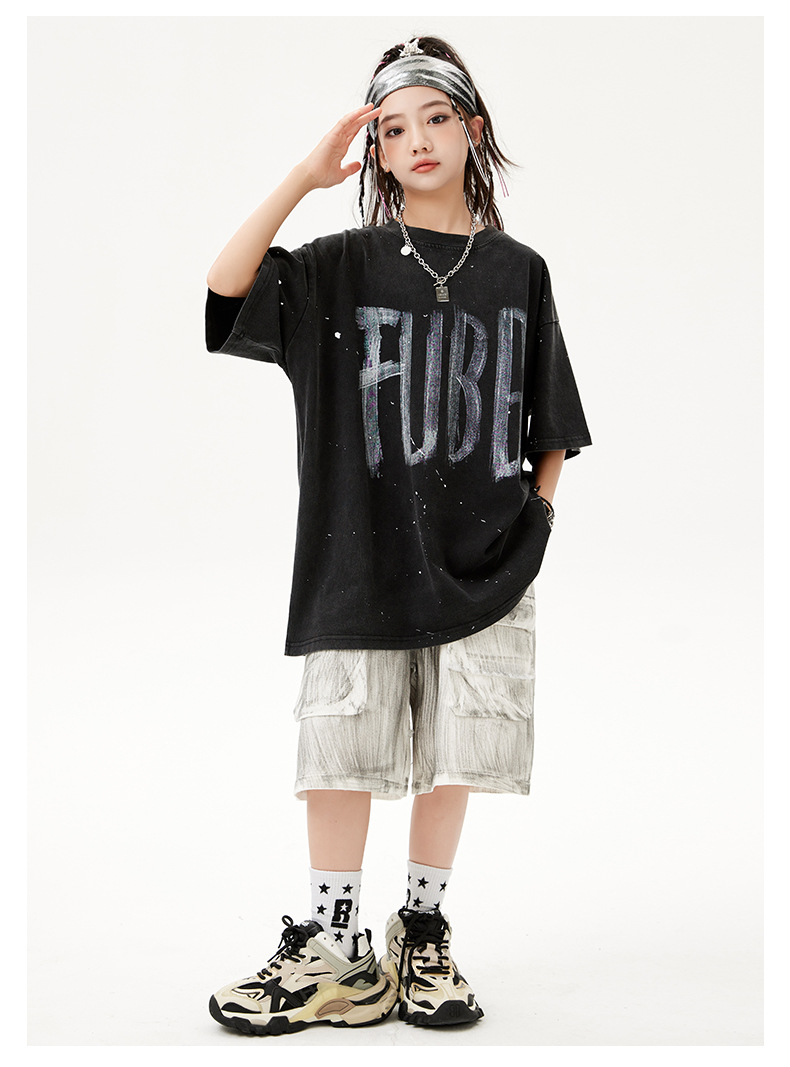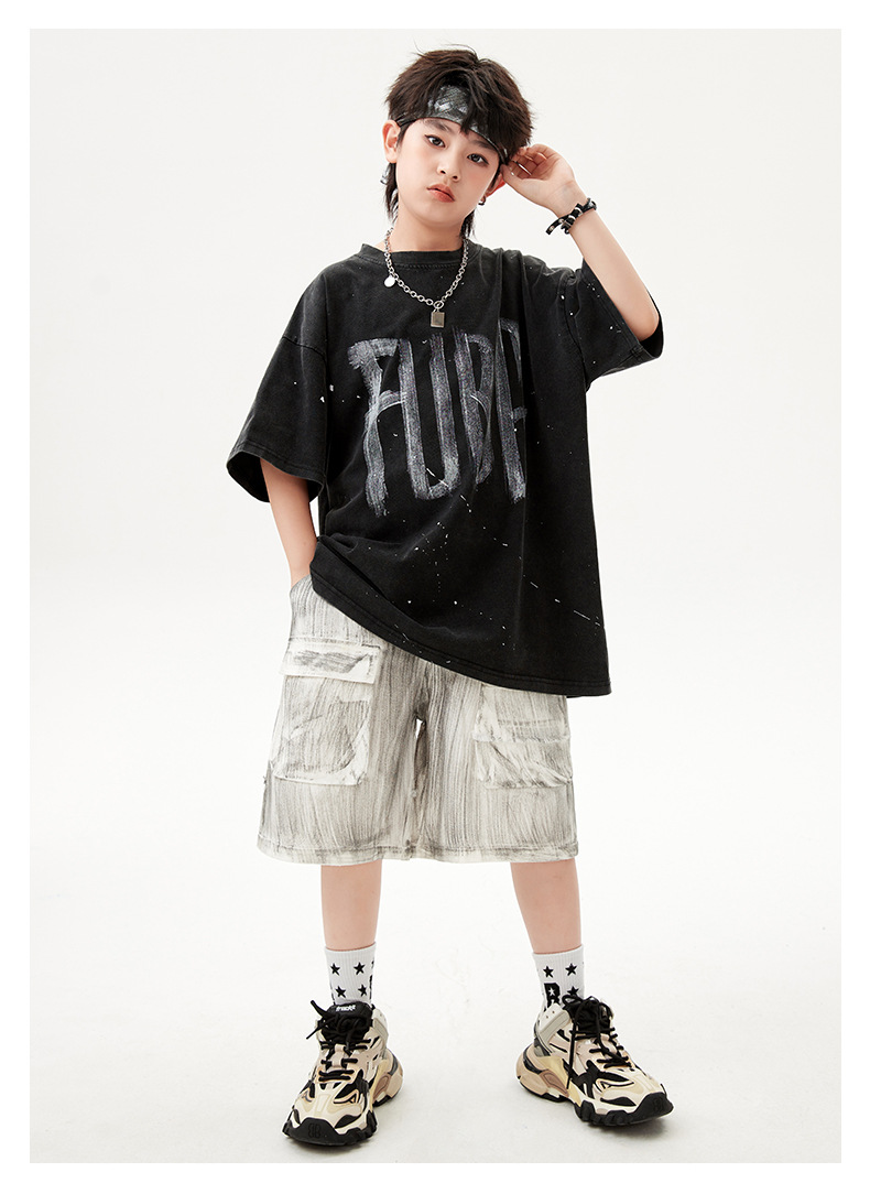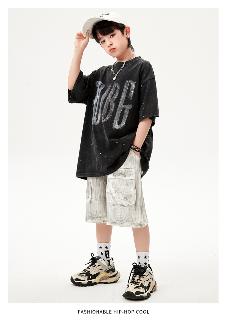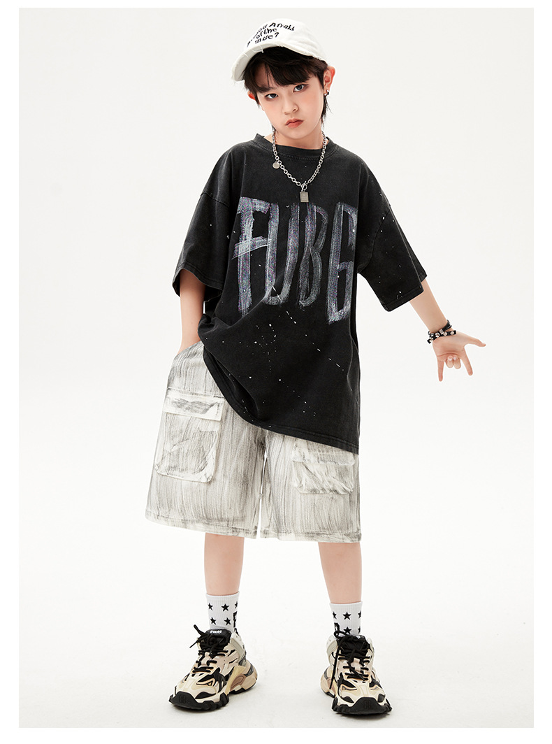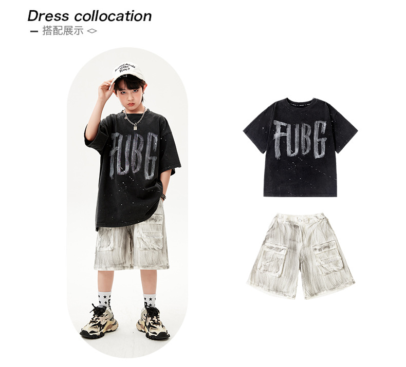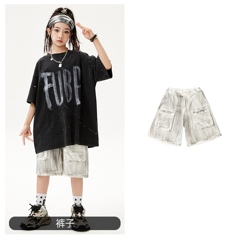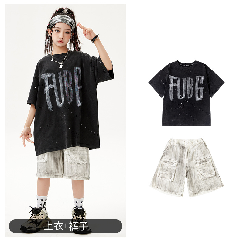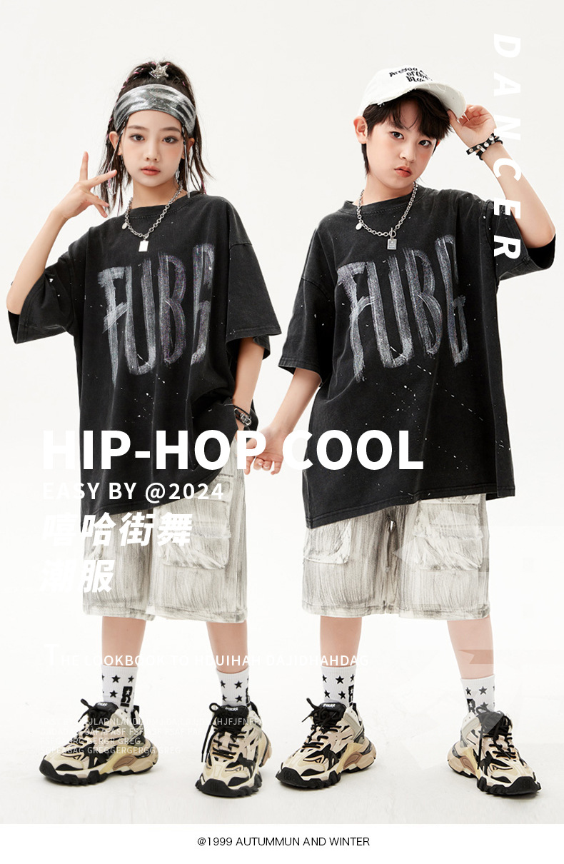 Hiphop 힙합 아동복 힙합 패션 브랜드 어린이 패션 의류 소년 프라이드 스트리트 레트로 반팔 세트 소녀 의상