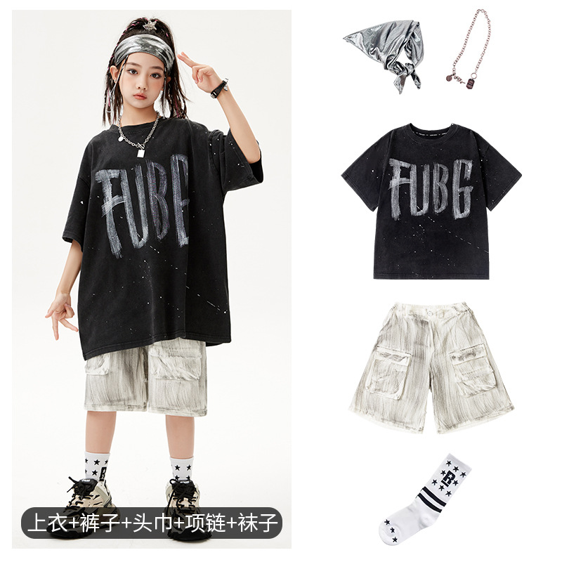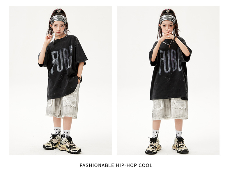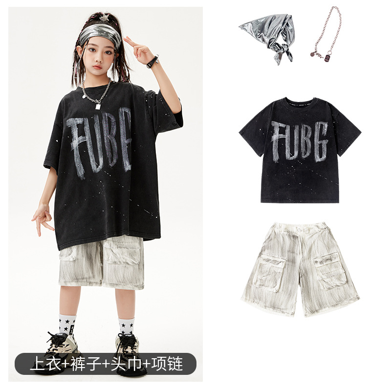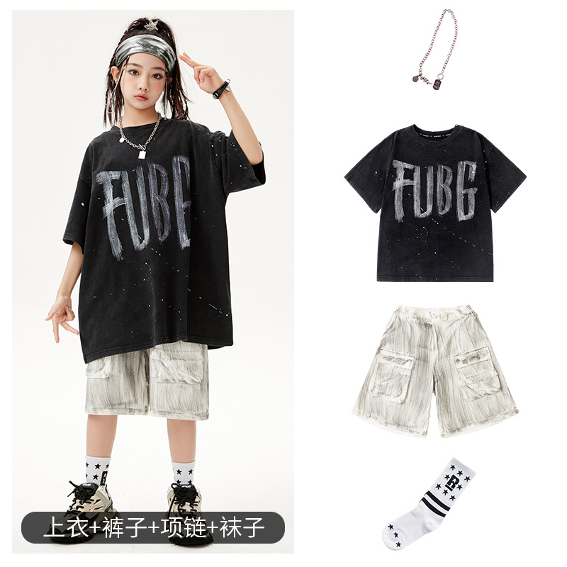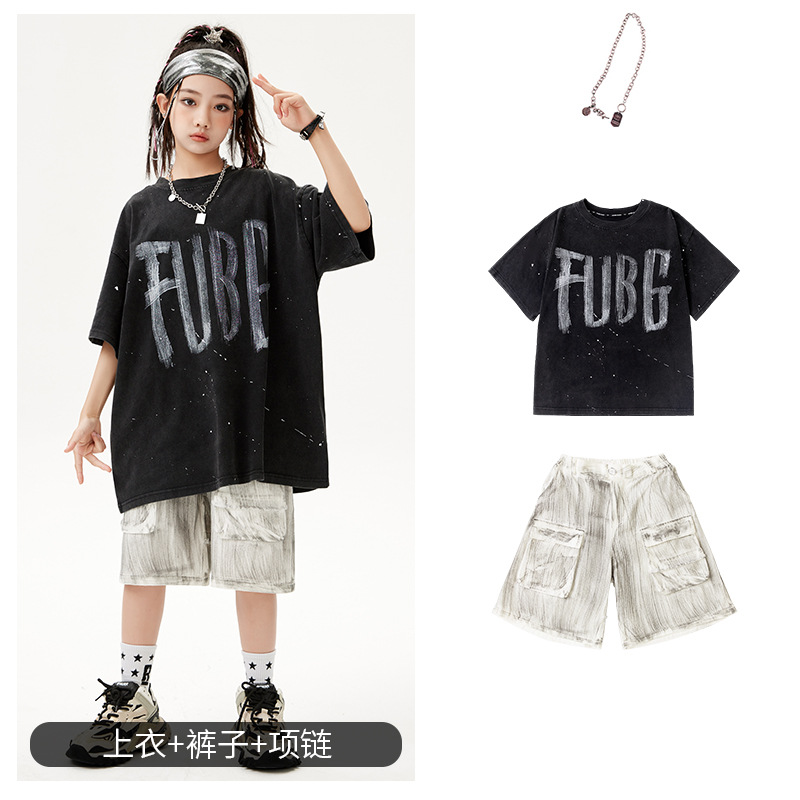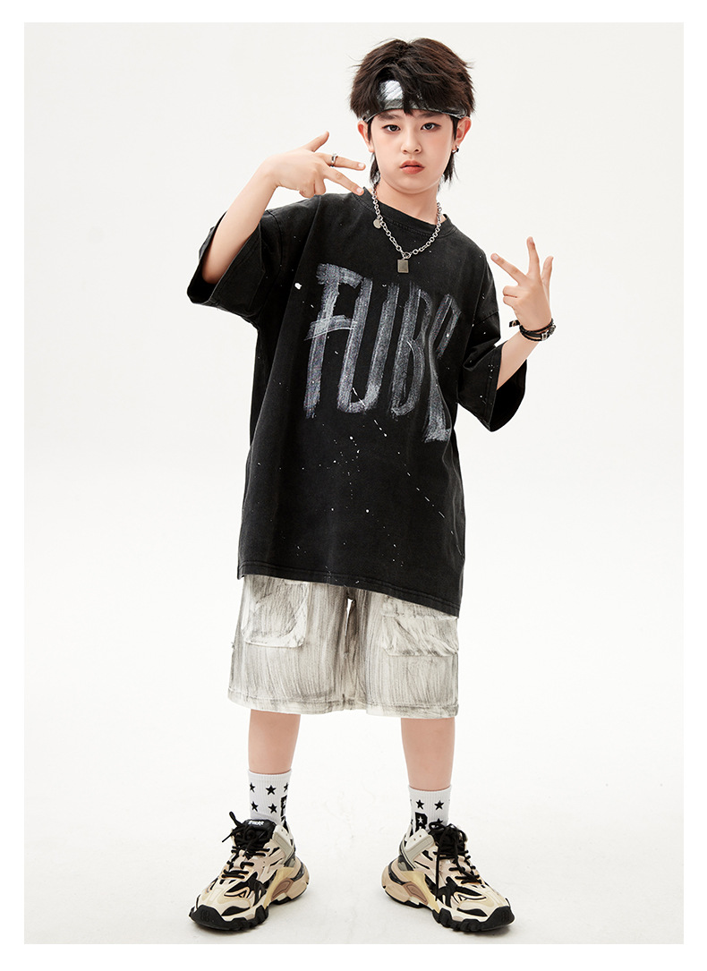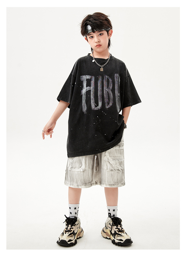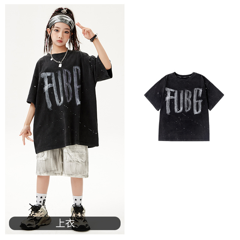 Hiphop 힙합 아동복 힙합 패션 브랜드 어린이 패션 의류 소년 프라이드 스트리트 레트로 반팔 세트 소녀 의상