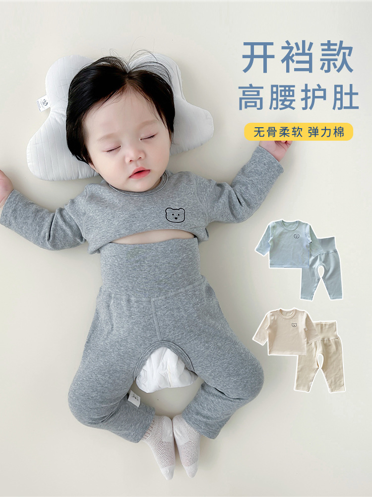 아기 옷 가을과 겨울 유아 병 남성 아기의 가을 옷 세트 높은 허리 배 보호 열린 바지 분할 세트스토어 가기
