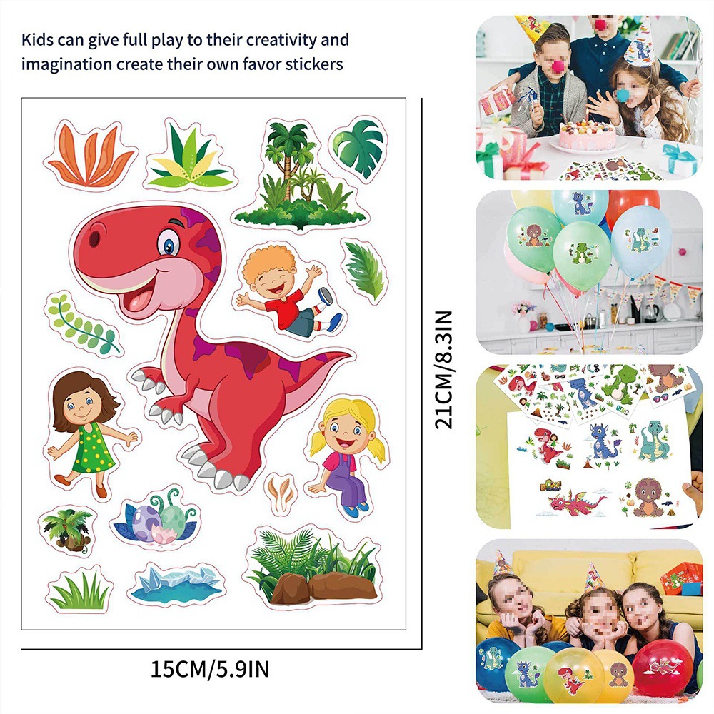 슈퍼 비용 효율적인 8 공룡 테마 재미 얼굴 변경 자기 접착 수제 어린이 스티커 DIY 만화 부모-자식 배치