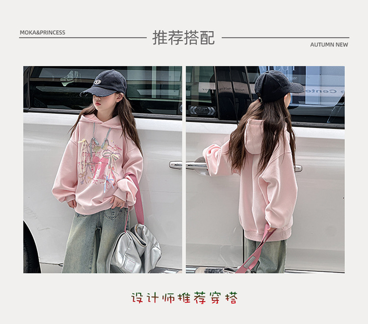 소녀의 봄과 가을 스웨터 2025 새로운 스타일 큰 어린이 유행 서양 스타일 후드 탑 한국 스타일 느슨한 게으른 후드 트렌디