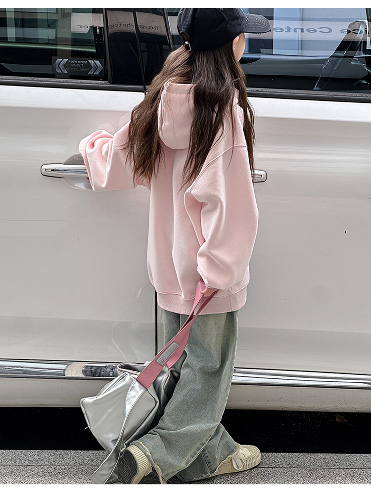 소녀의 봄과 가을 스웨터 2025 새로운 스타일 큰 어린이 유행 서양 스타일 후드 탑 한국 스타일 느슨한 게으른 후드 트렌디스토어 가기