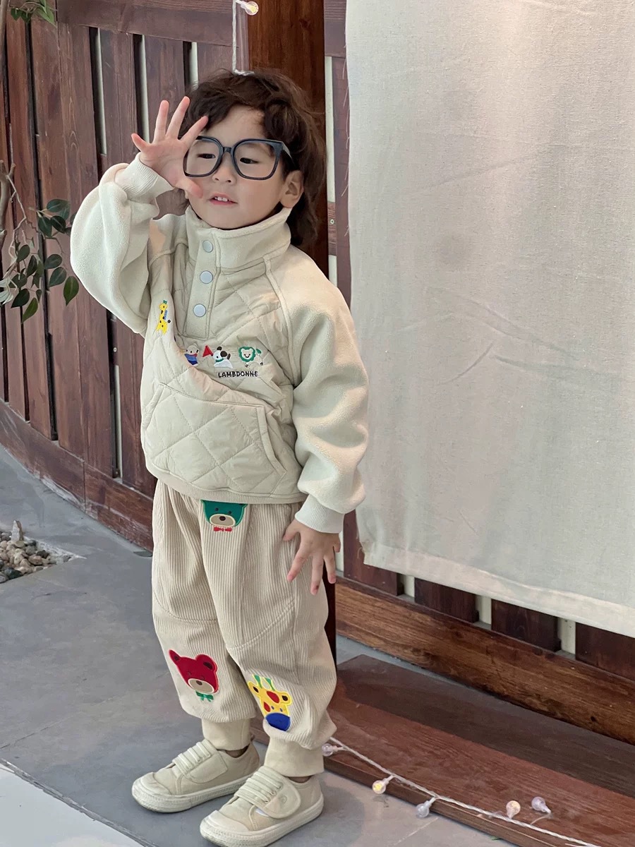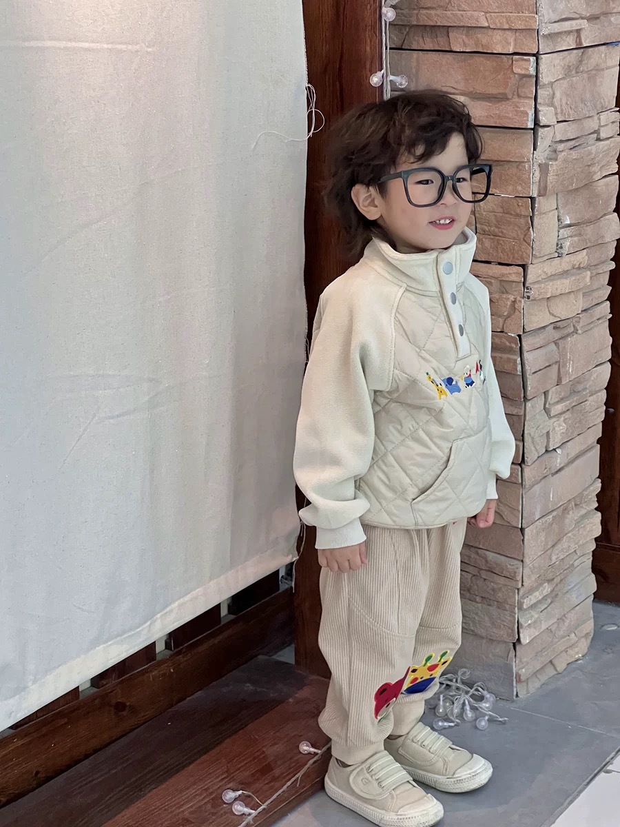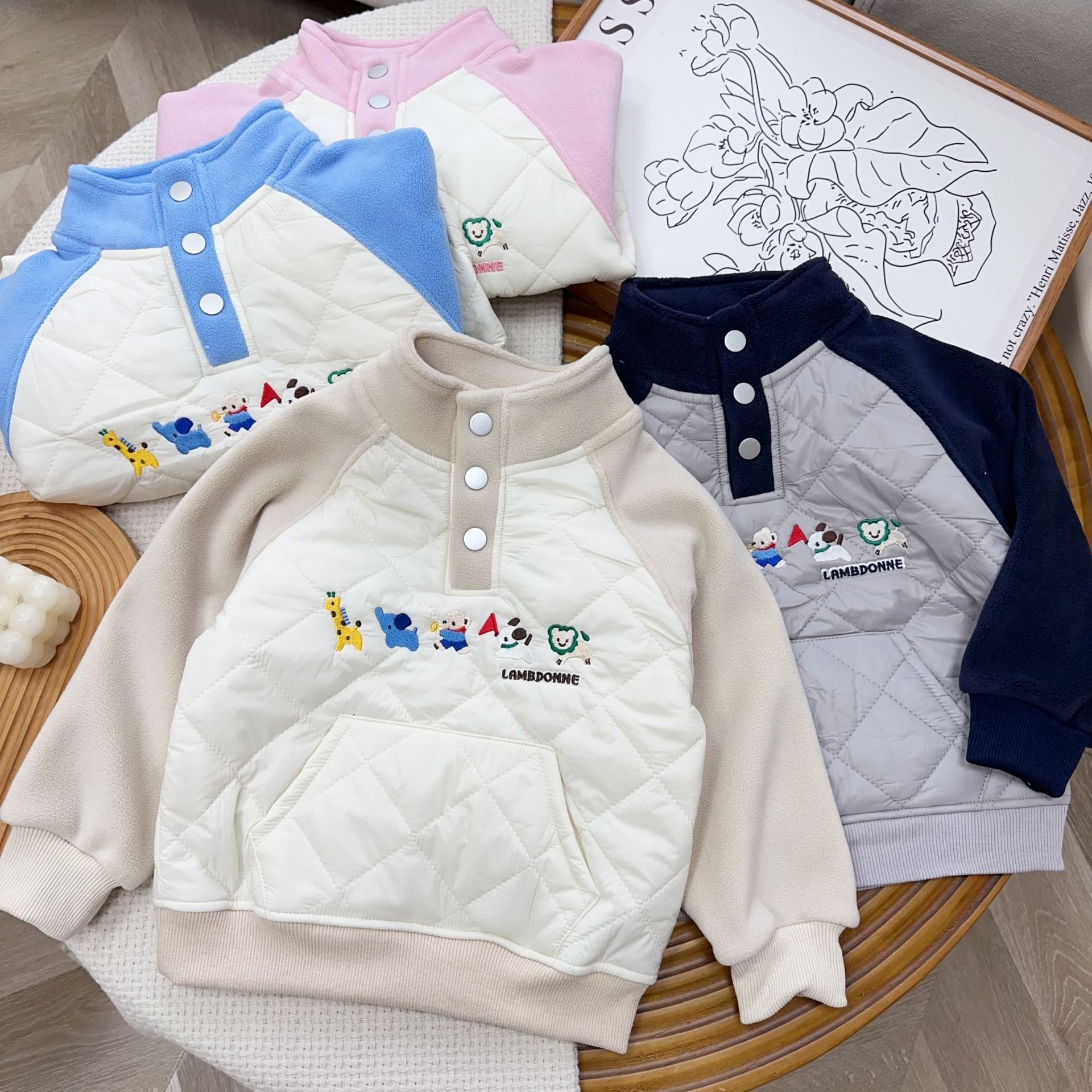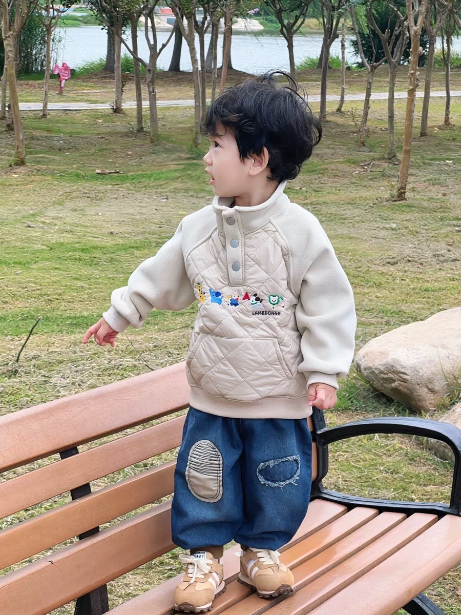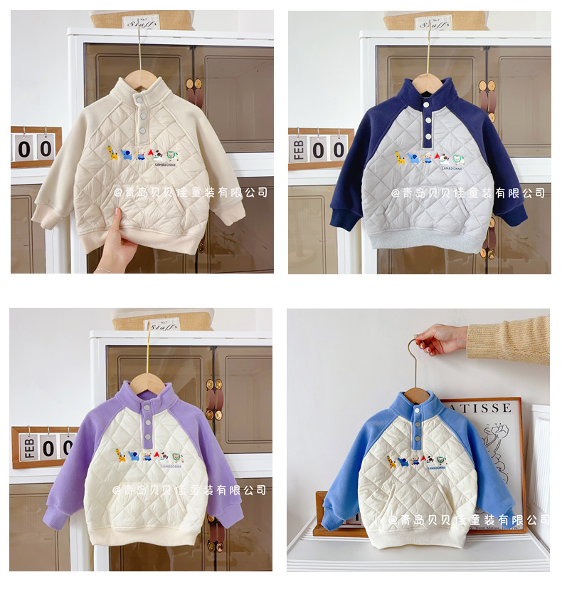어린이용 기모 안감 2025년 신상품, 중소 어린이용 보온 교복, 남아용 겨울 두꺼운 스웨트셔츠, 재고 있음, 수출용스토어 가기