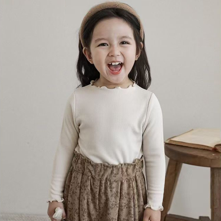 여아용 이너웨어 가을 겨울 양면 독일산 벨벳 보온 무지 반터틀넥 티셔츠 2025 아동용 스타일리시 신축성 상의