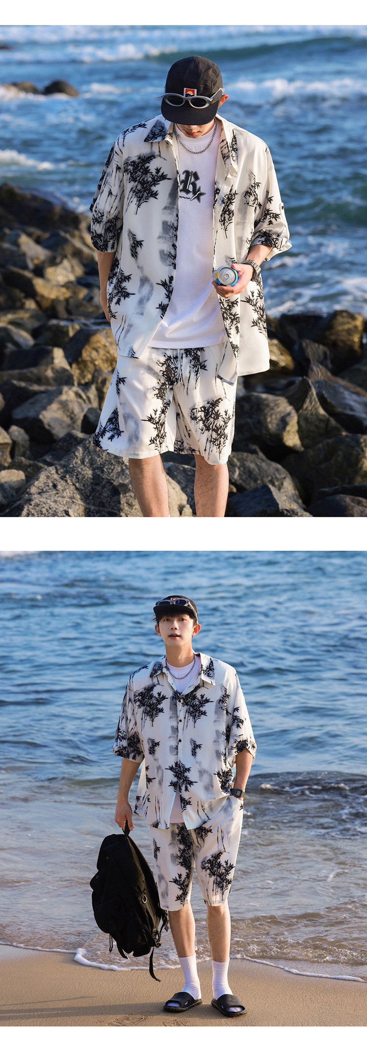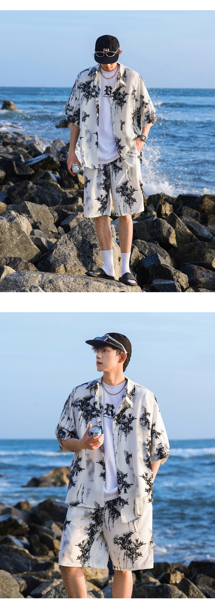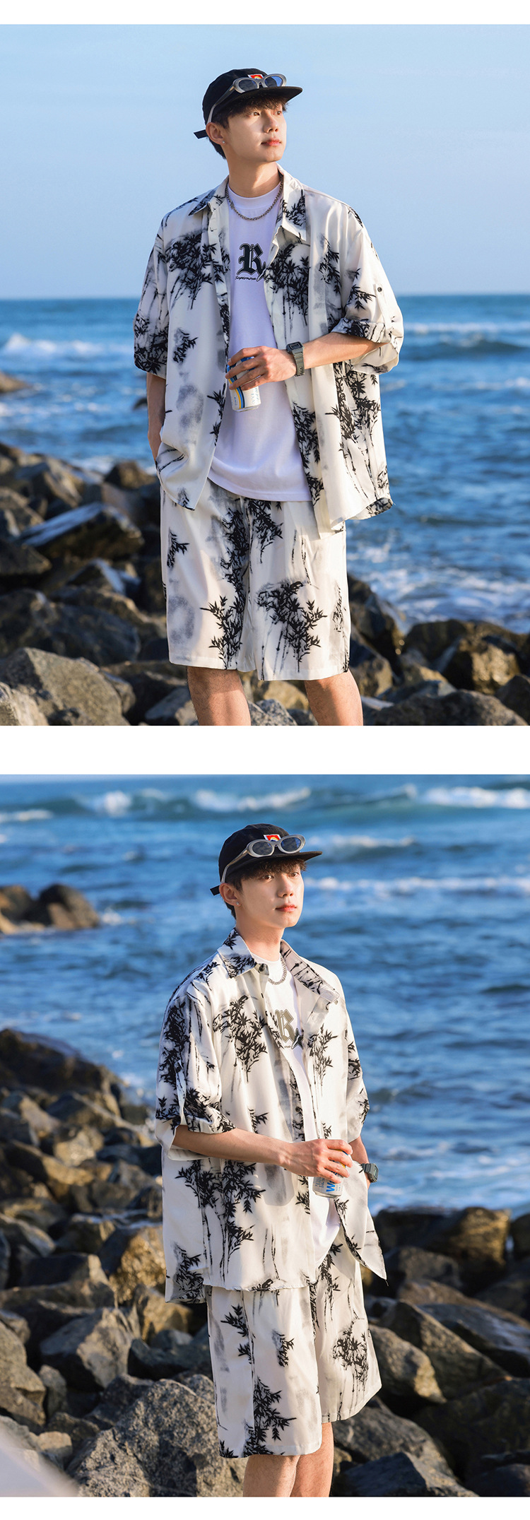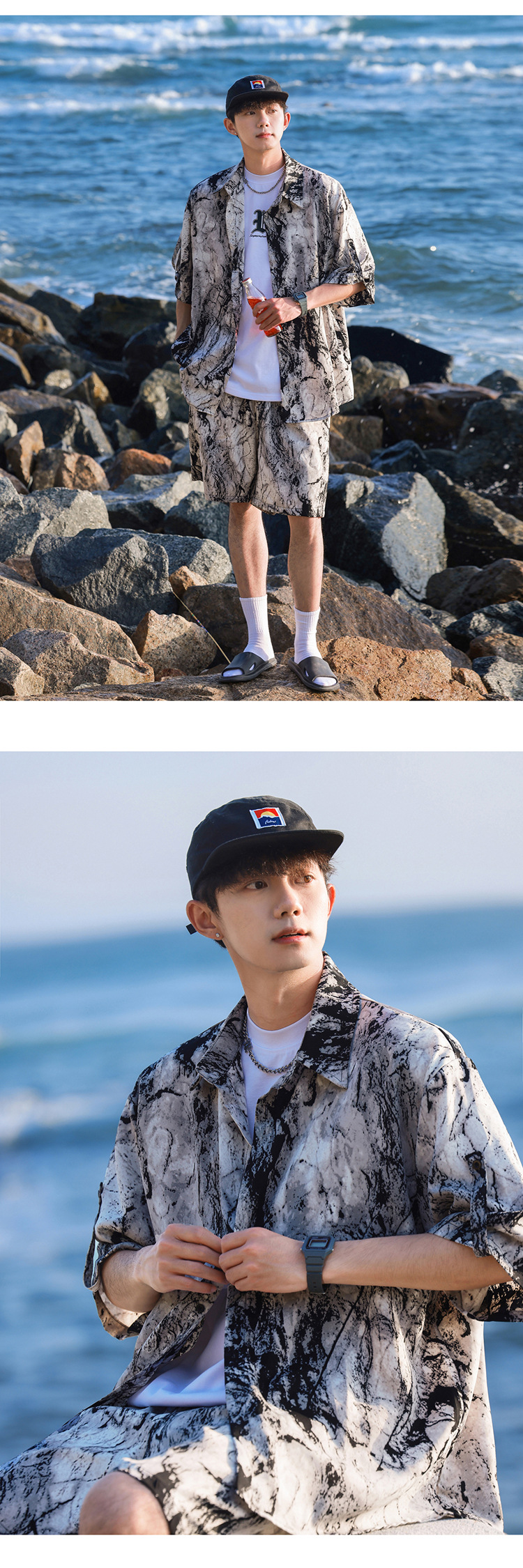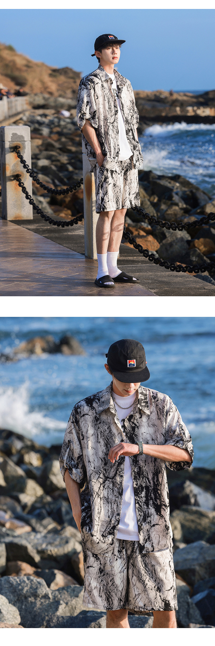 아이스 실크 타이 염료 스포츠 세트 남자 여름 트렌디 브랜드 새로운 스타일 잘 생긴 느슨한 반팔 비치 반바지 캐주얼 투피스 세트스토어 가기