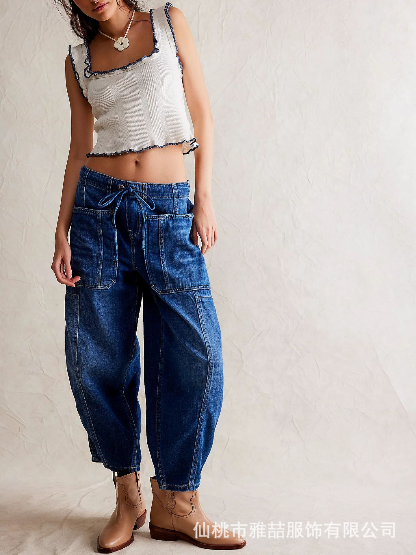 2024 독립 역 새로운 캐주얼 느슨한 낮은 허리 튜브 청바지
