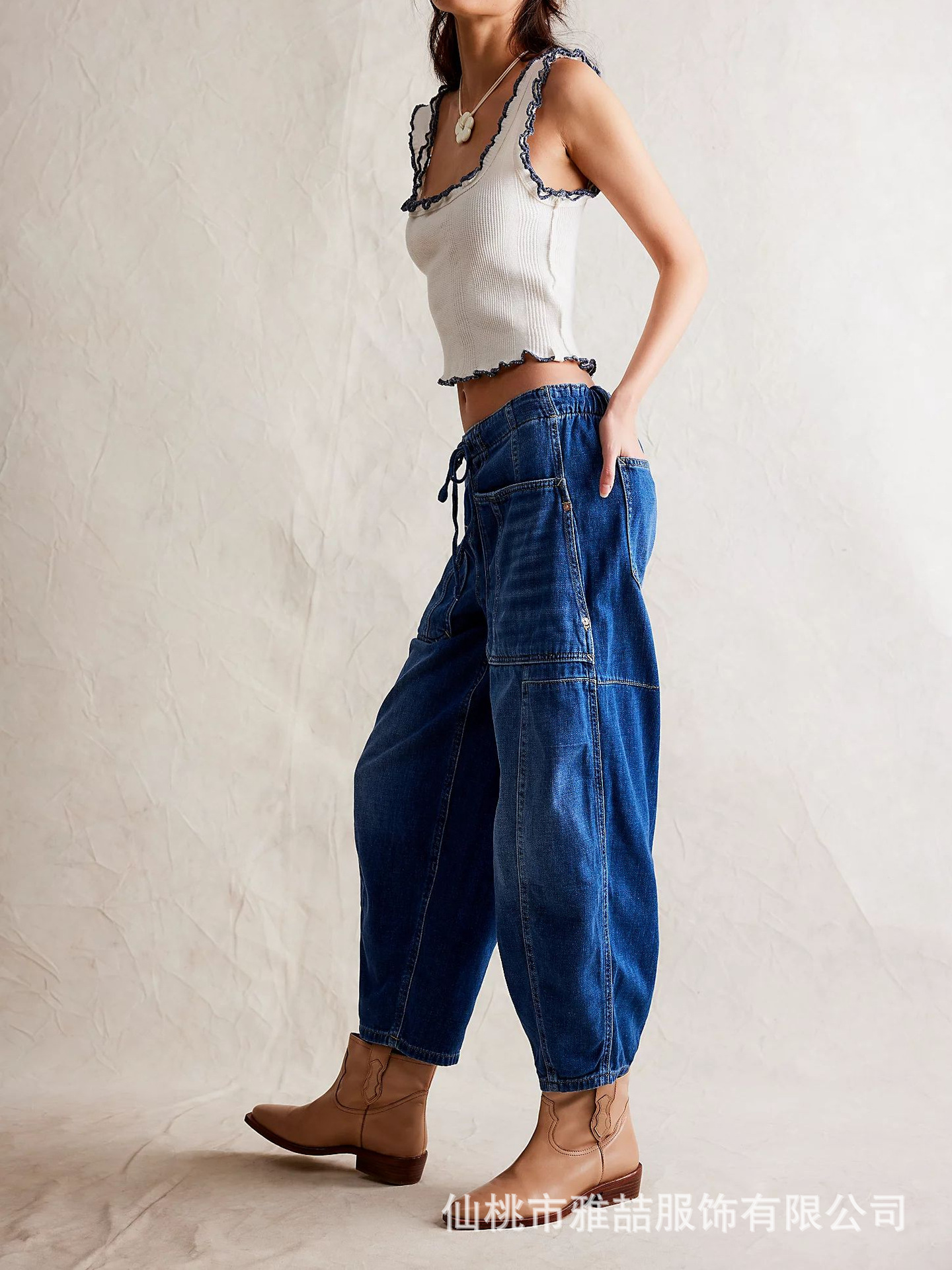 2024 독립 역 새로운 캐주얼 느슨한 낮은 허리 튜브 청바지스토어 가기