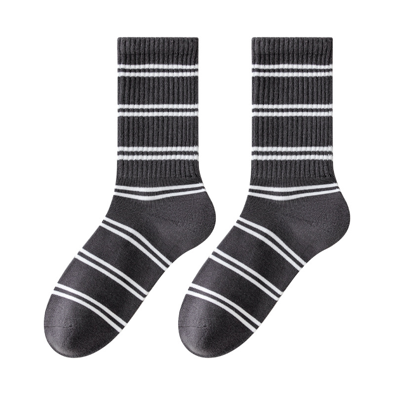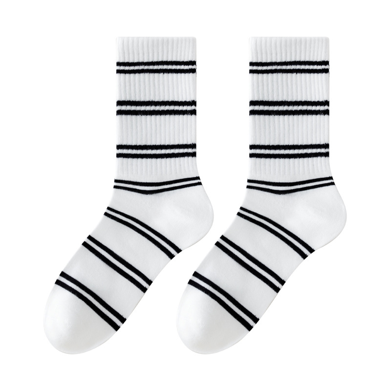 양말 여성의 가을 중반 튜브 양말 뼈없는 복고풍 줄무늬 땀 흡수성 흰색 캐주얼 조커 숙녀 양말면 양말 도매