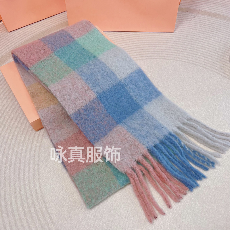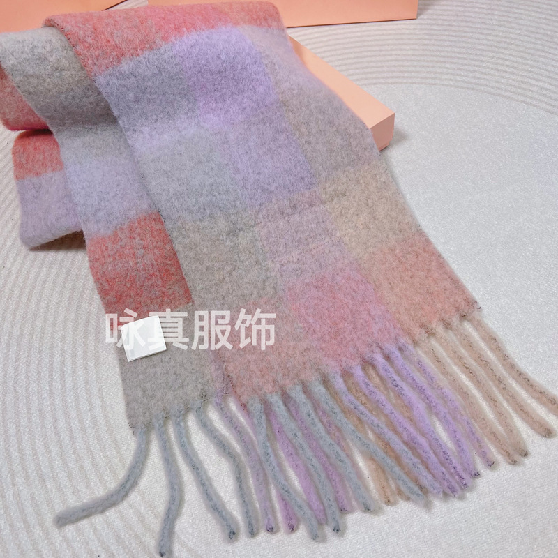 고품질 무지개 스카프 알파카 스카프 컬러 체크 무늬 스카프 숄 모헤어 확장 겨울 따뜻한 스카프스토어 가기