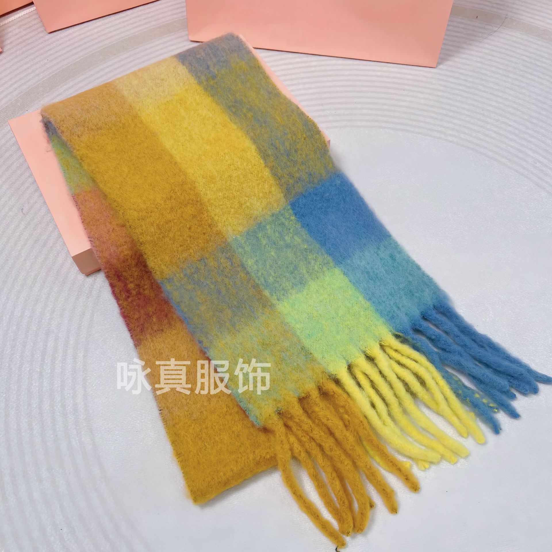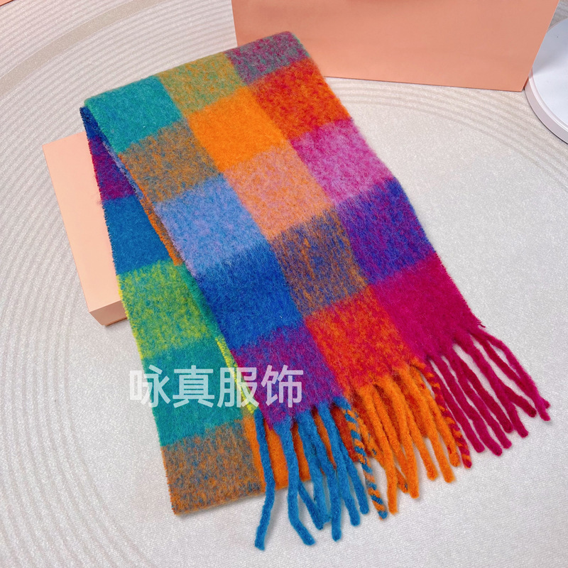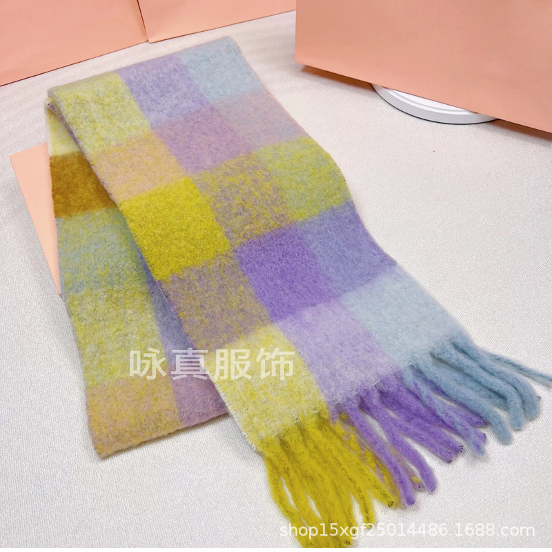 고품질 무지개 스카프 알파카 스카프 컬러 체크 무늬 스카프 숄 모헤어 확장 겨울 따뜻한 스카프