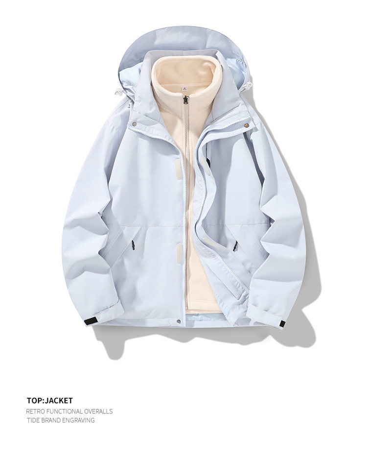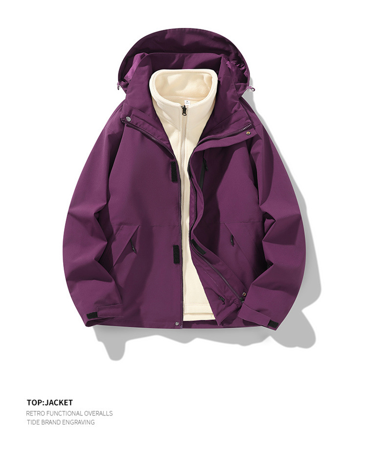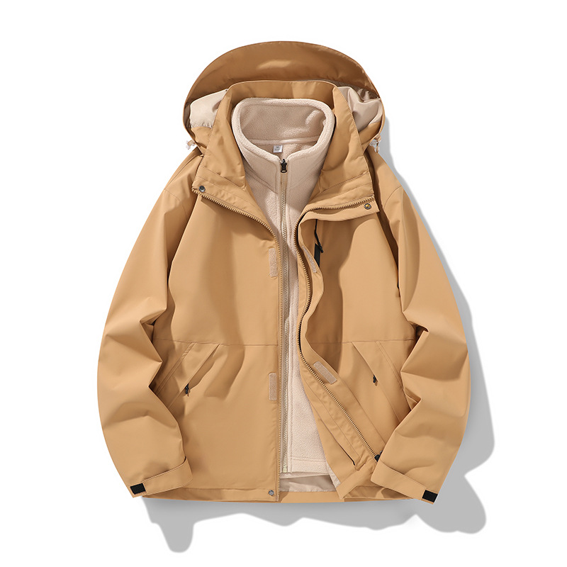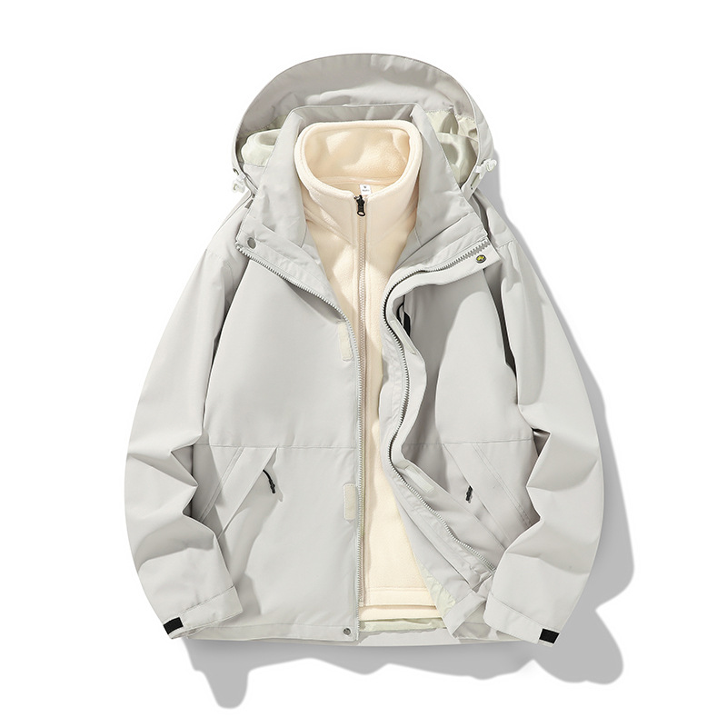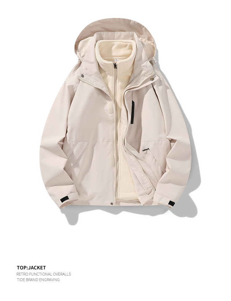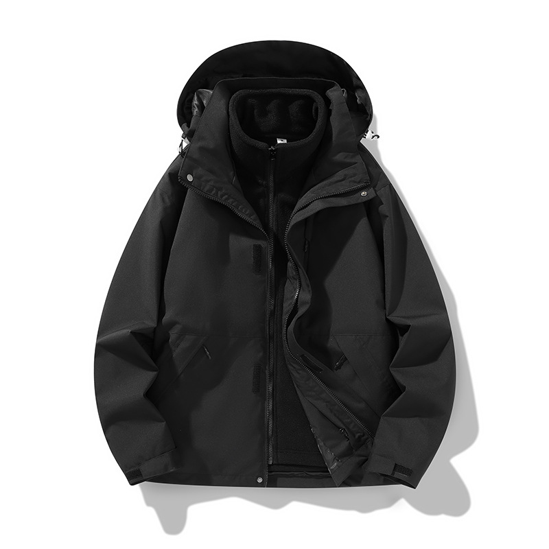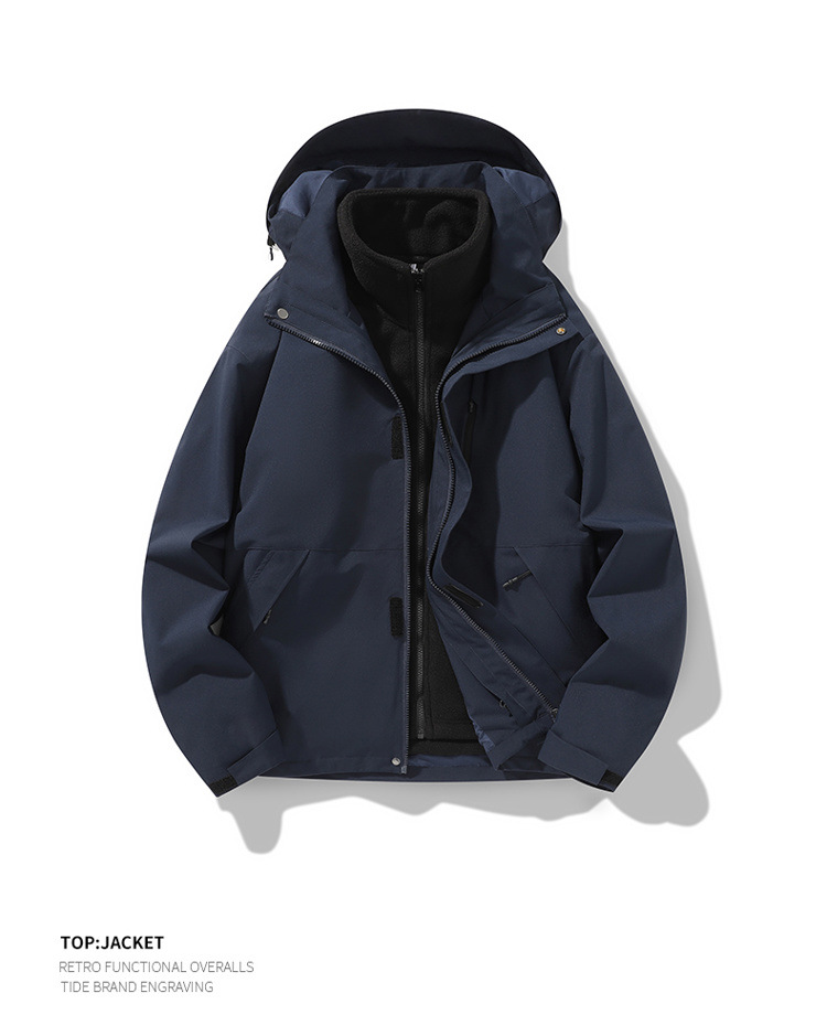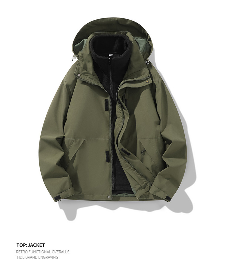 가을과 겨울 새로운 마운틴 후드 재킷 방풍 방수 재킷 두꺼운 남성 십대 트렌디 브랜드 솔리드 컬러 3 대 1