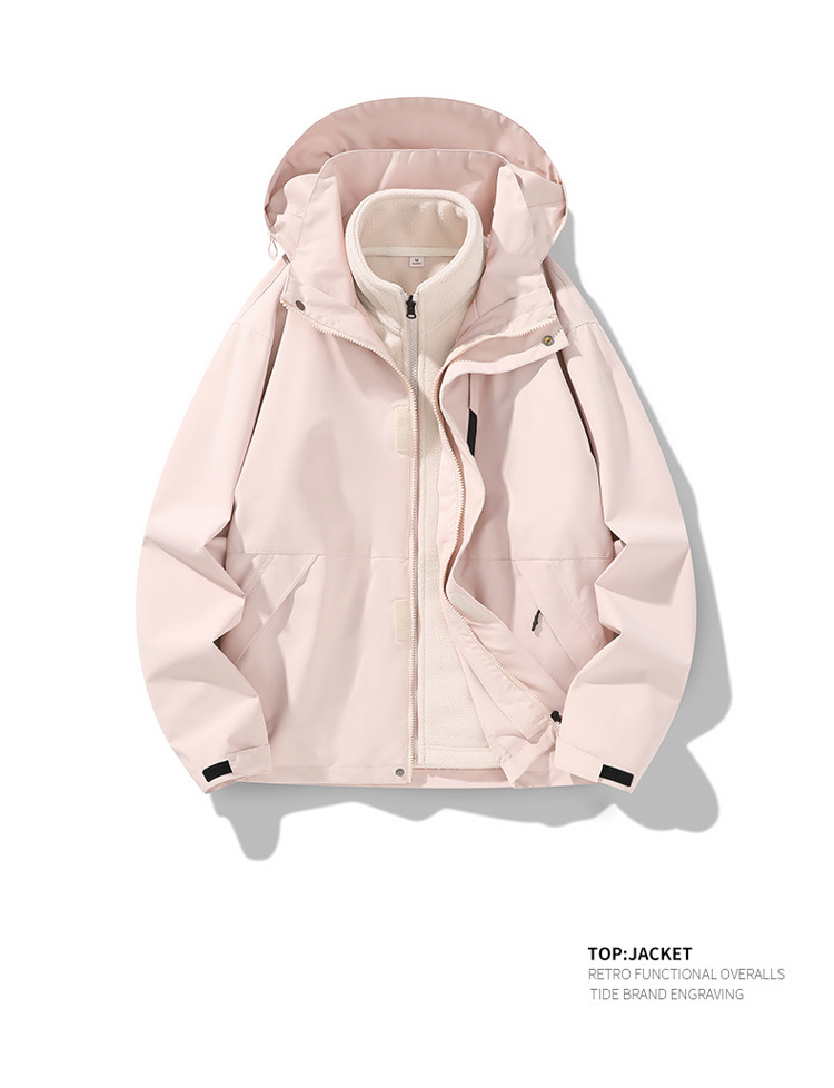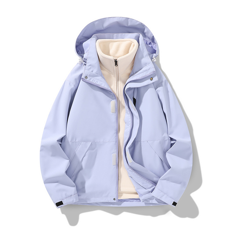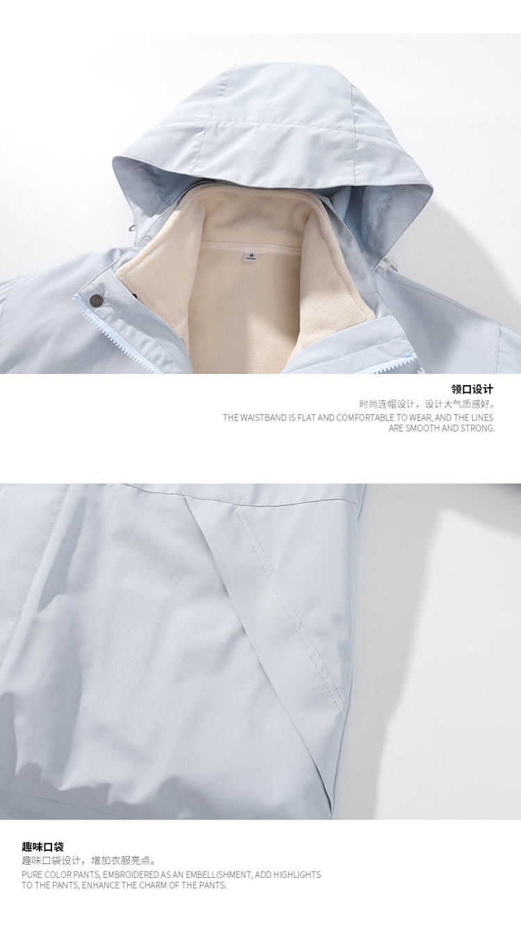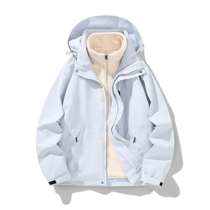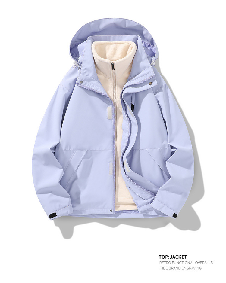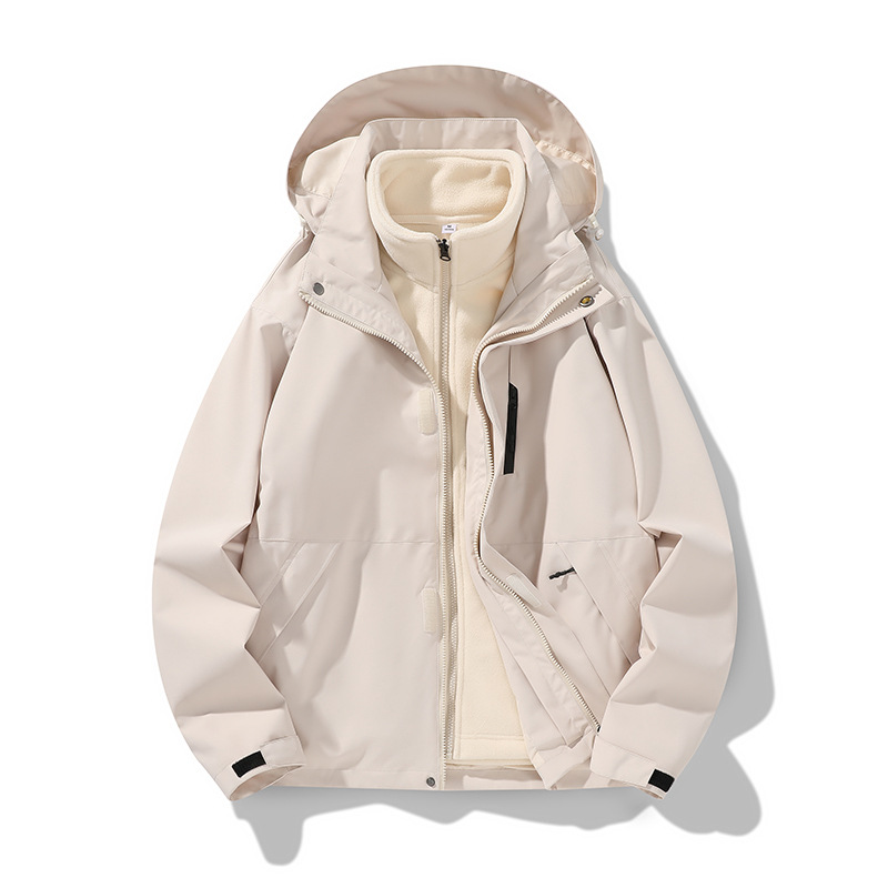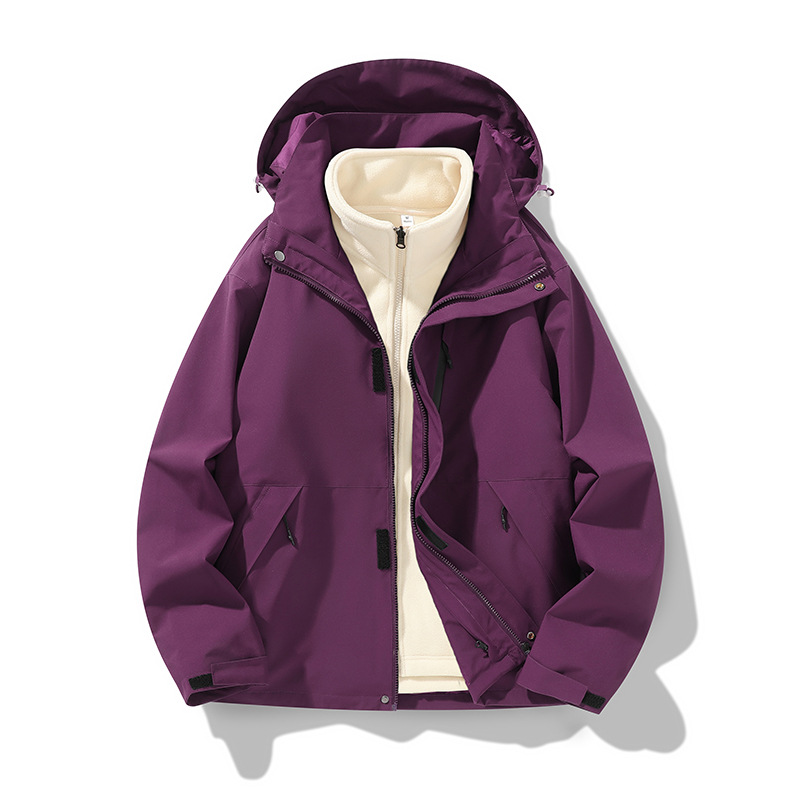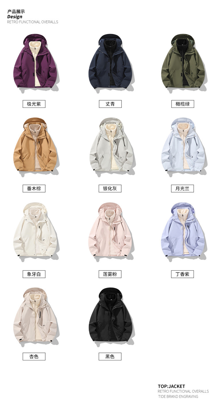 가을과 겨울 새로운 마운틴 후드 재킷 방풍 방수 재킷 두꺼운 남성 십대 트렌디 브랜드 솔리드 컬러 3 대 1
