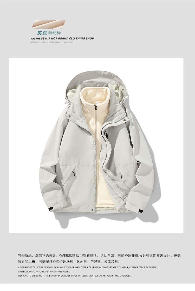 가을과 겨울 새로운 마운틴 후드 재킷 방풍 방수 재킷 두꺼운 남성 십대 트렌디 브랜드 솔리드 컬러 3 대 1스토어 가기