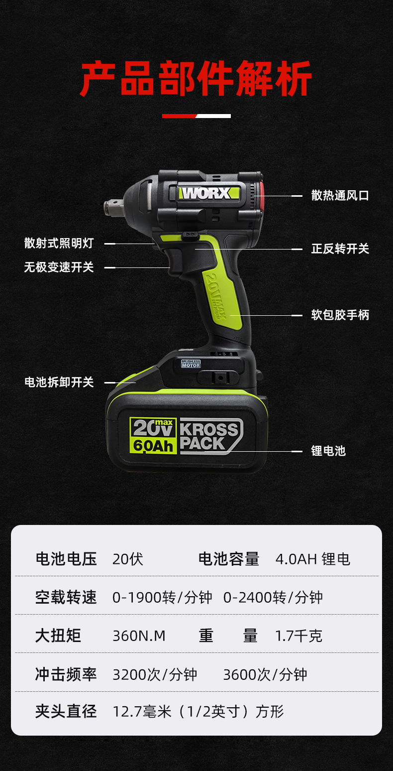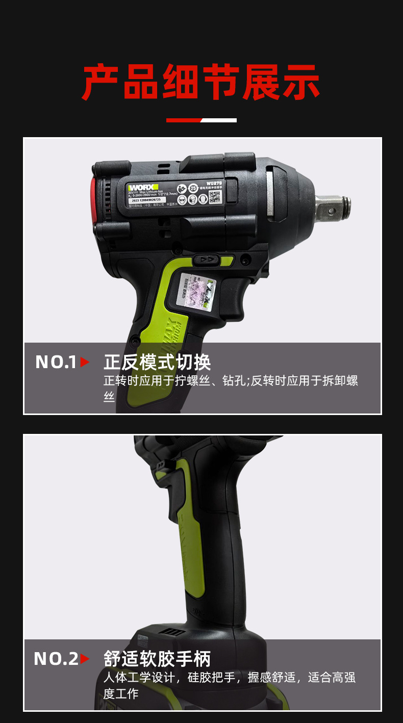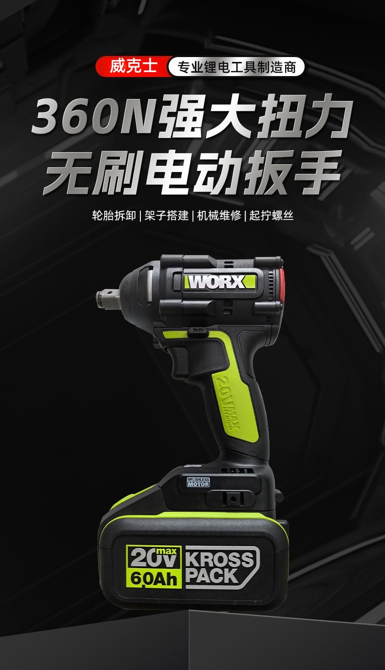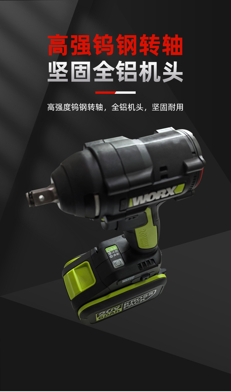 위커스 전동 렌치 WU279 브러시리스 리튬 배터리 목공 임팩트 렌치 브러시리스 자동차 수리 전동 렌치
