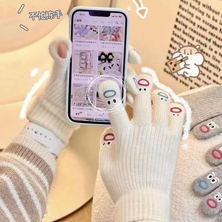 소녀의 마음 귀여운 재미있는 표현 다섯 손가락 장갑 터치 스크린 일본 학생 겨울 승마스토어 가기