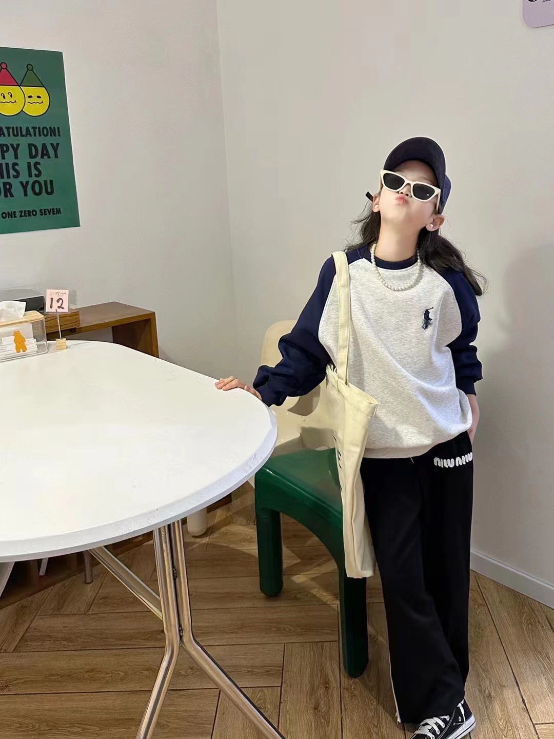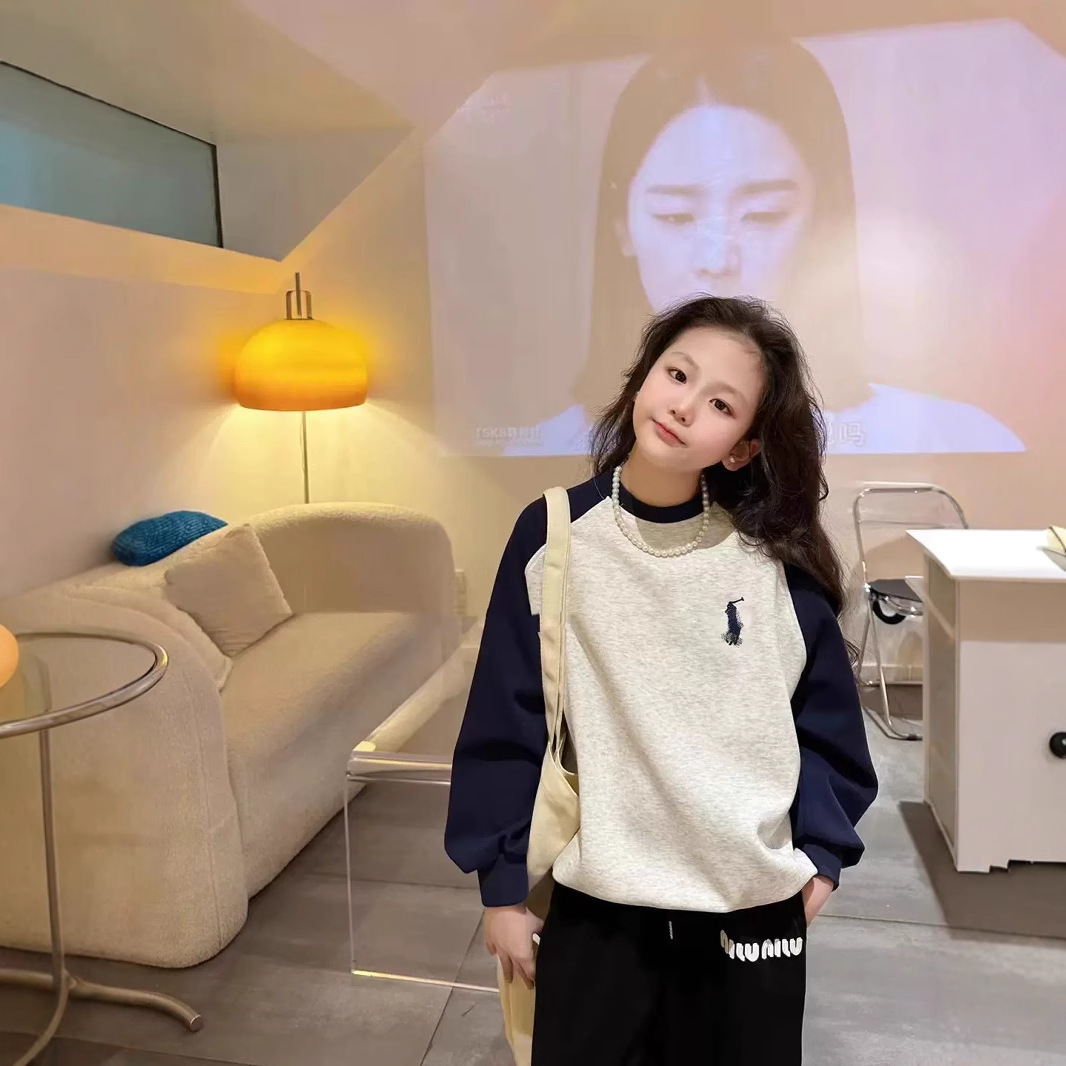 AINI 어린이 수 놓은 라글란 스웨터 봄과 가을 중형 아동복 대비 색상 새로운 내부 소년과 소녀의 트렌디 한 탑스토어 가기