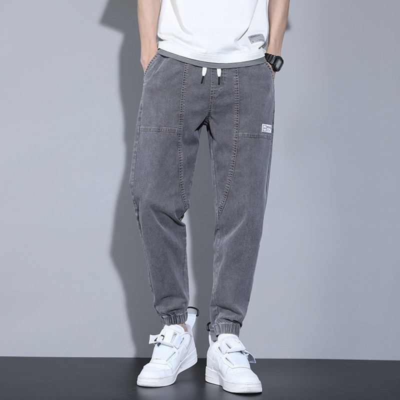 청바지 남성 봄과 여름 한국 스타일 Ins 패셔너블 브랜드 느슨한 플러스 사이즈 터트 팬츠 패션 라벨 느슨한 느슨한 허리 캐주얼 바지