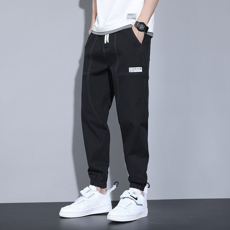 청바지 남성 봄과 여름 한국 스타일 Ins 패셔너블 브랜드 느슨한 플러스 사이즈 터트 팬츠 패션 라벨 느슨한 느슨한 허리 캐주얼 바지스토어 가기