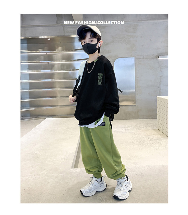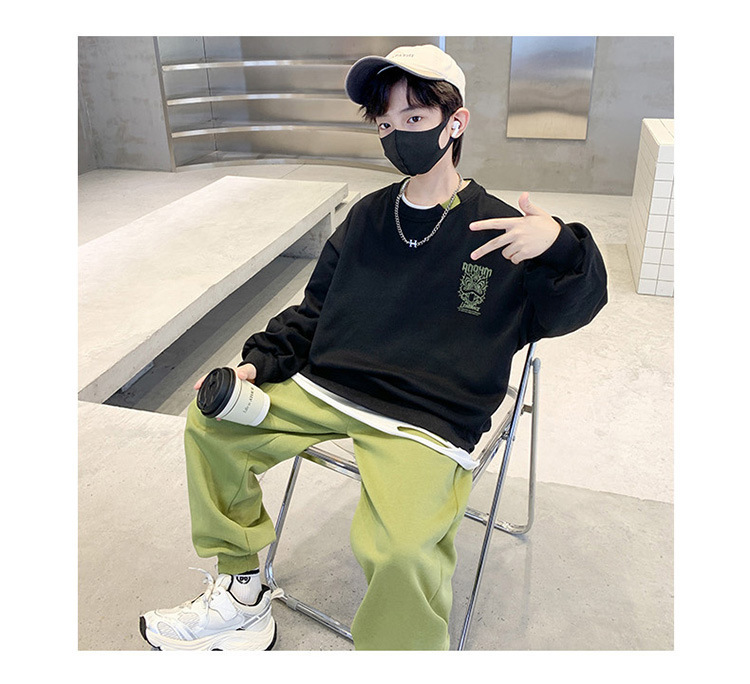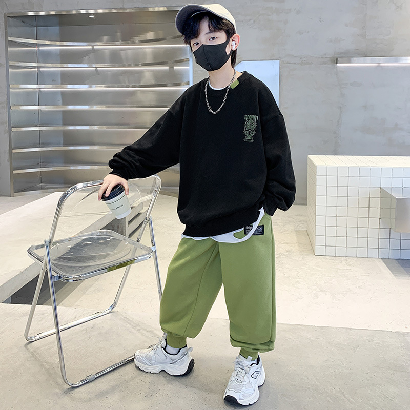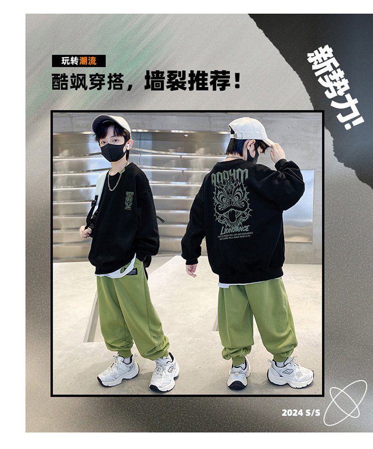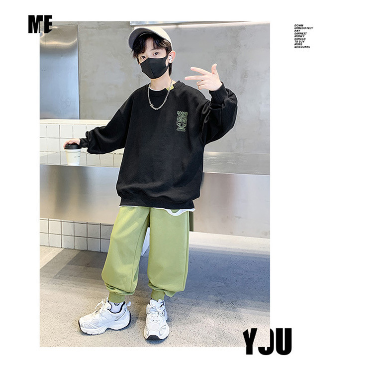 소년의 가을 세트 2024 새로운 유행과 잘 생긴 큰 아이들의 봄과 가을 소년 스포츠 투피스 세트스토어 가기