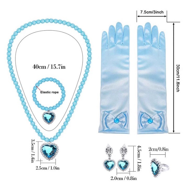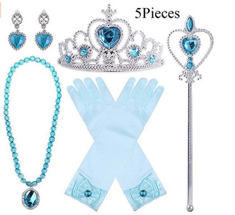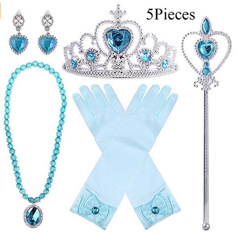 아이샤 생일 왕관 목걸이 아이샤 장갑 어린이 왕관 머리 장식 소녀 매직 지팡이 헤어 액세서리 세트