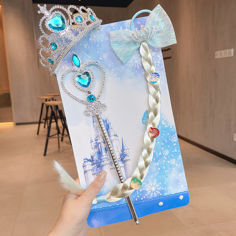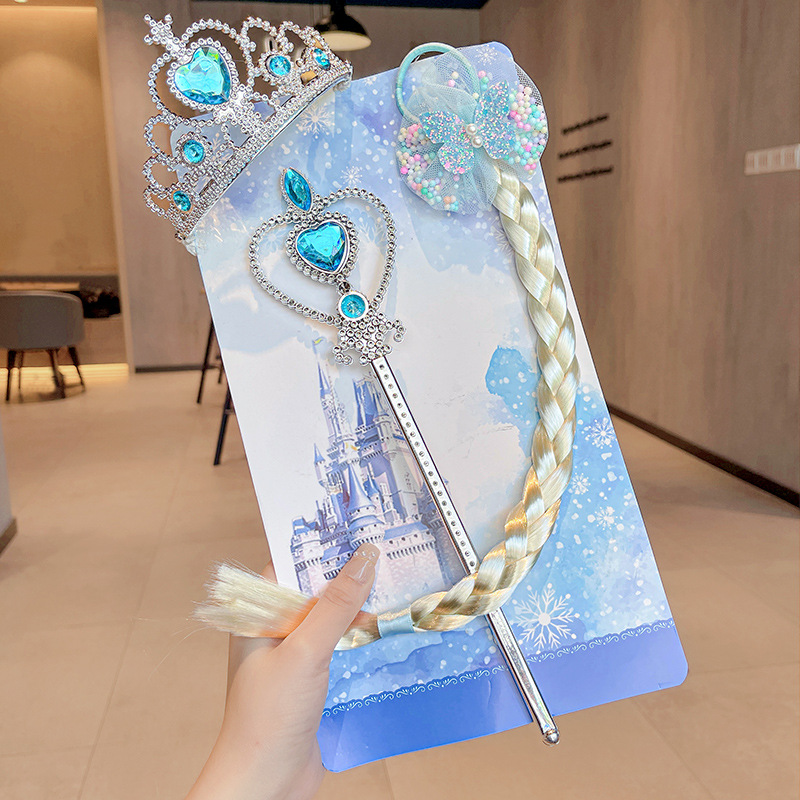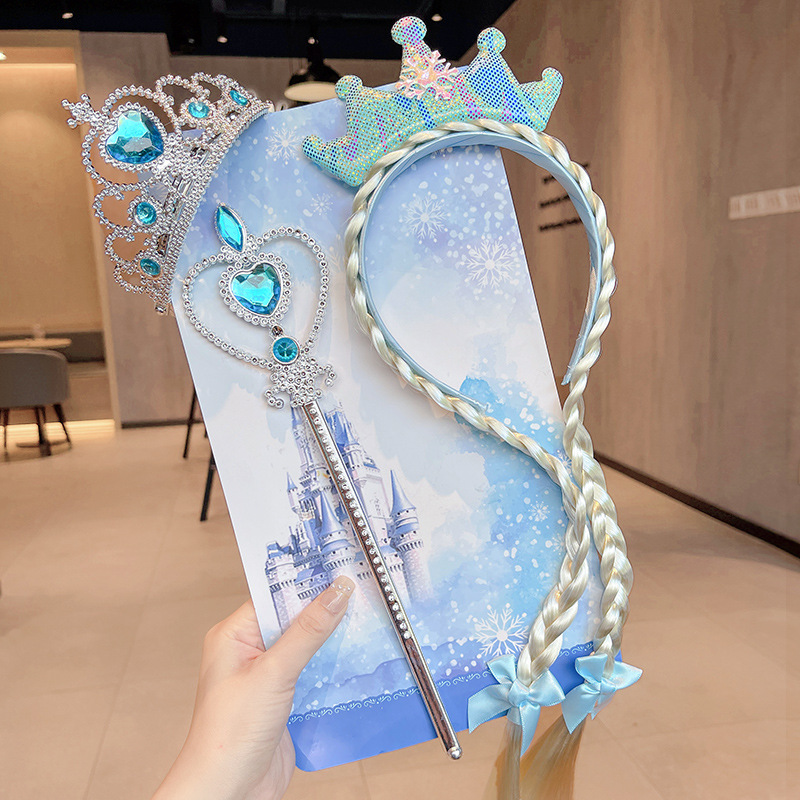 아이샤 생일 왕관 목걸이 아이샤 장갑 어린이 왕관 머리 장식 소녀 매직 지팡이 헤어 액세서리 세트스토어 가기