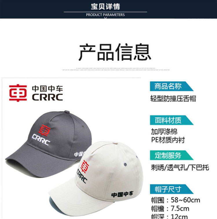 중국 CRRC 아이보리 CSR 작업복 모자 Zhuzhou Sifang 공장 작업장 안전 헬멧 충돌 방지 캡스토어 가기