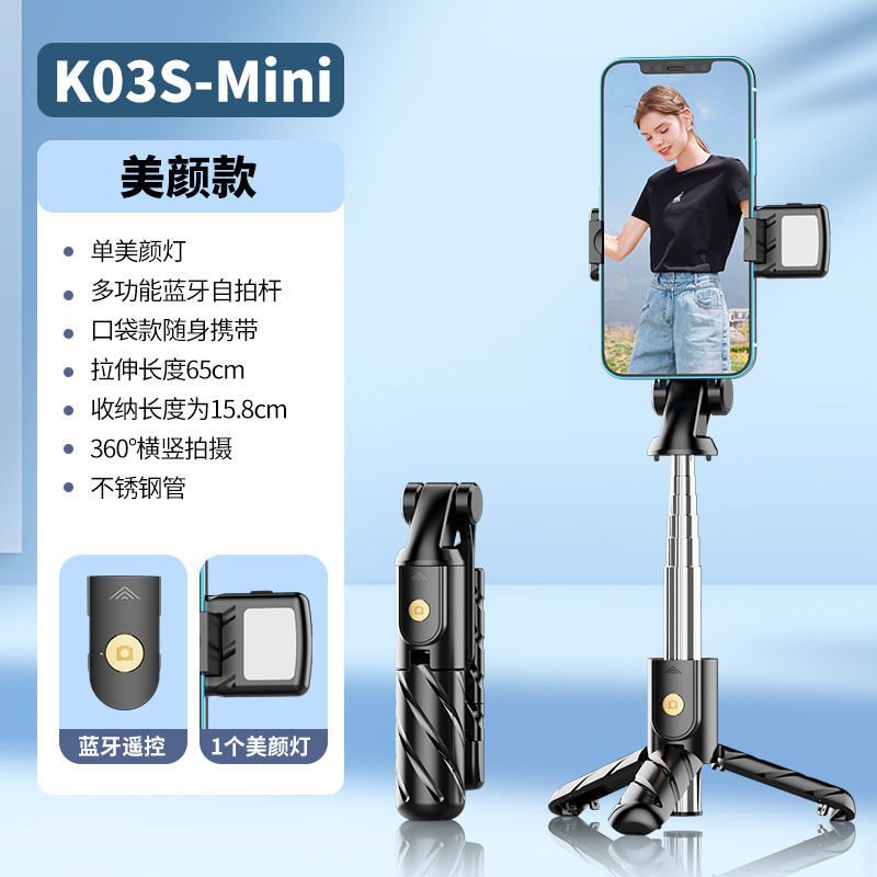 K03 새로운 미니 셀카 스틱 블루투스 카메라 안티 쉐이크 셀카 스틱 휴대 전화 라이브 방송 스탠드 삼각대 통합