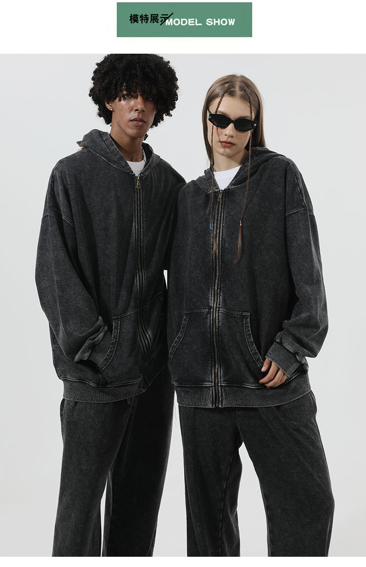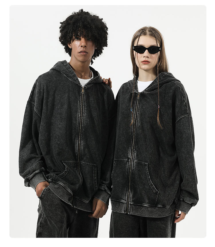 남성과 여성을위한 빈티지 세탁기 카디건 스웨터 2024 국경 새로운 후드 봄과 가을 같은 스타일의 오래된 스웨터 재킷스토어 가기