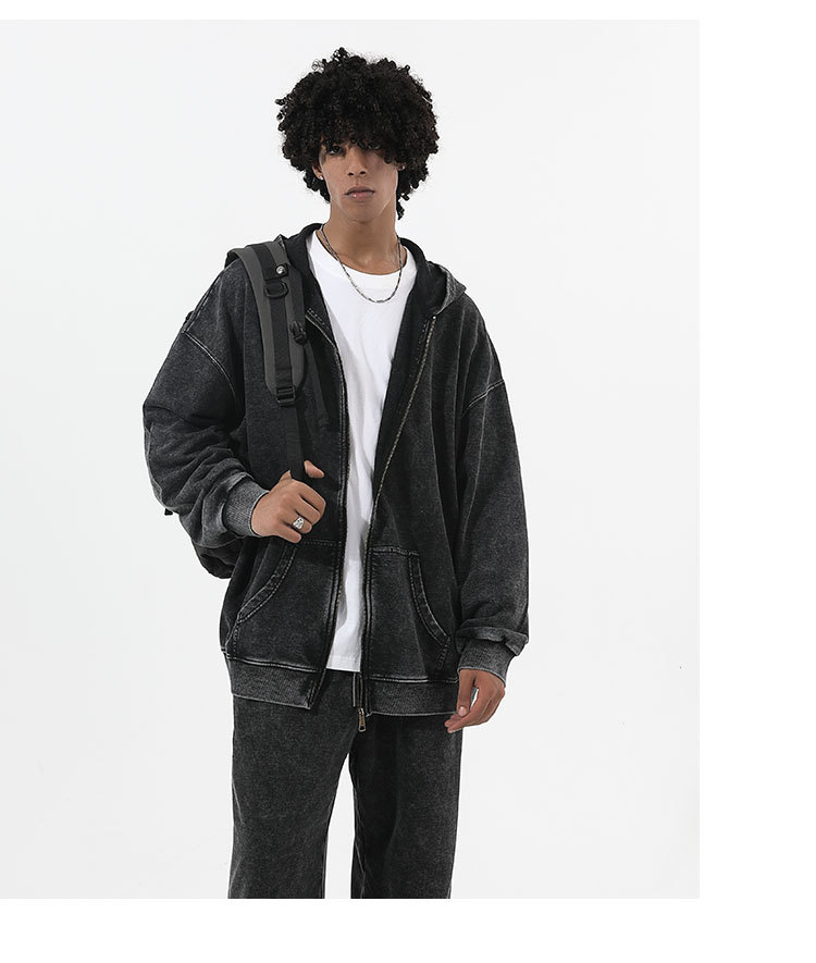 남성과 여성을위한 빈티지 세탁기 카디건 스웨터 2024 국경 새로운 후드 봄과 가을 같은 스타일의 오래된 스웨터 재킷