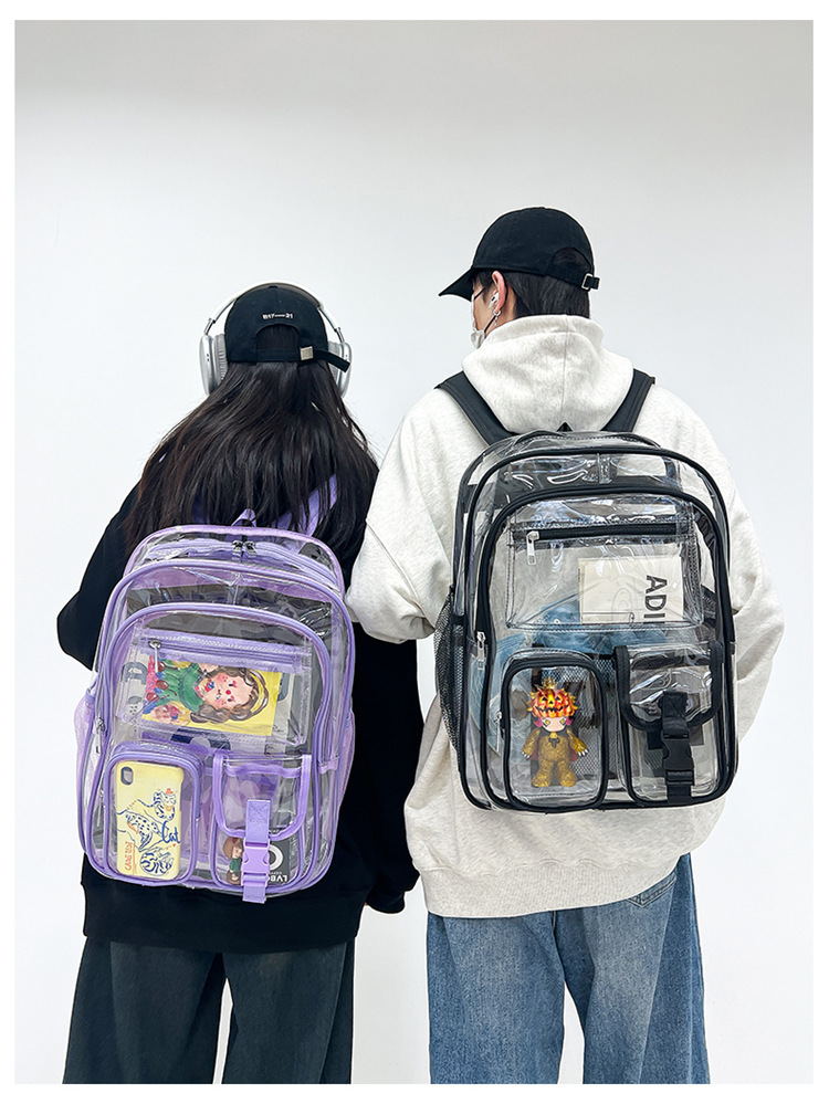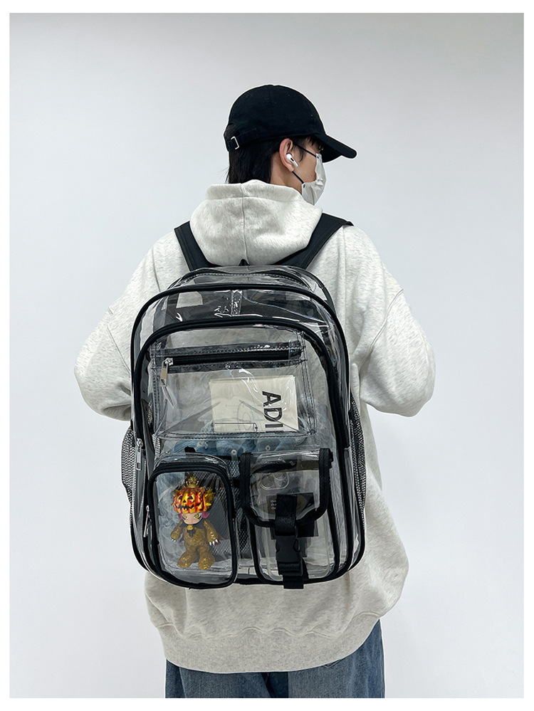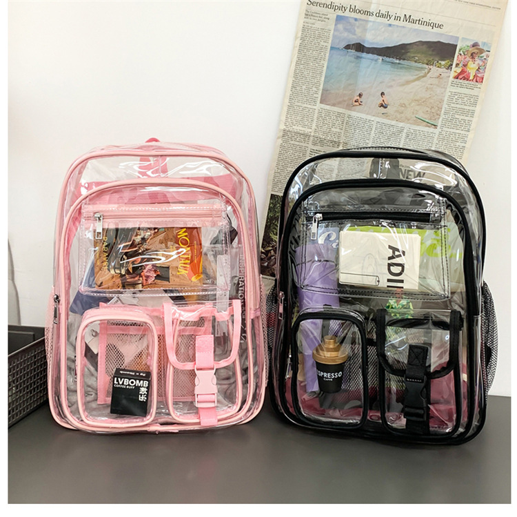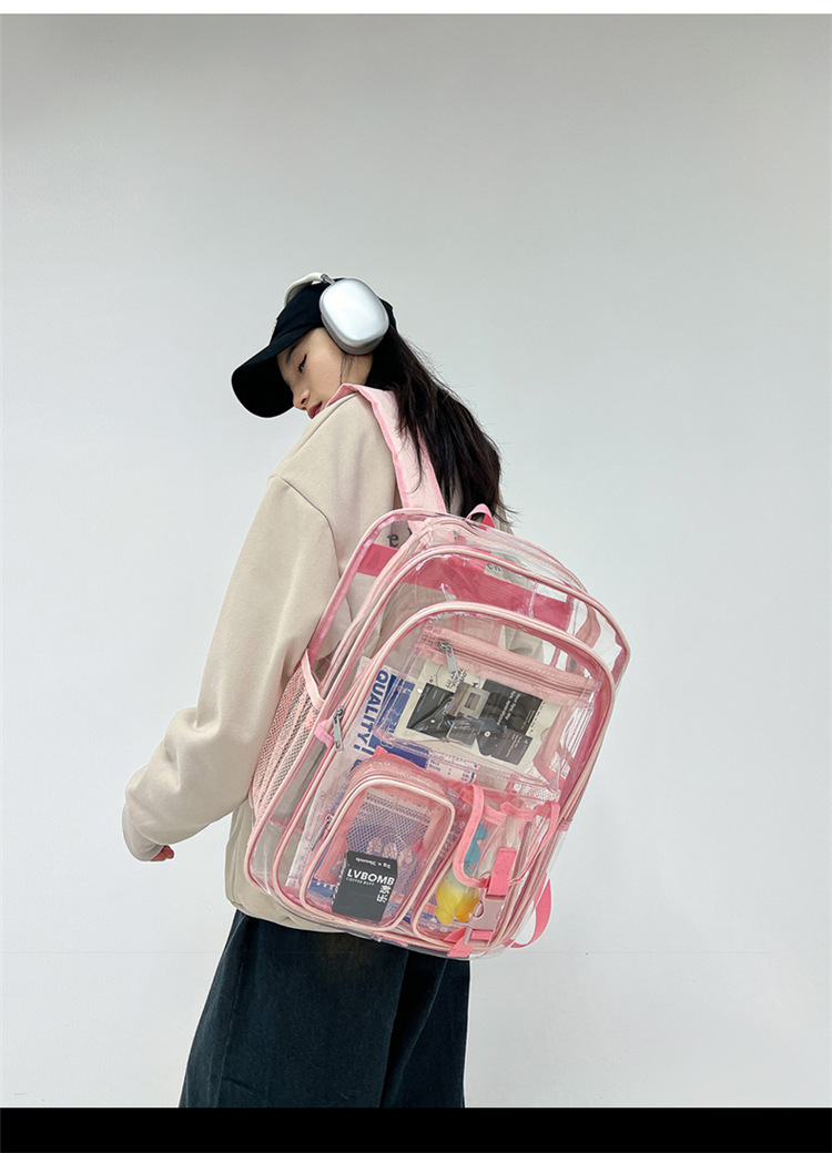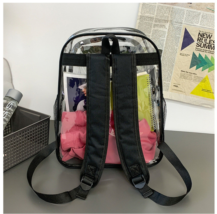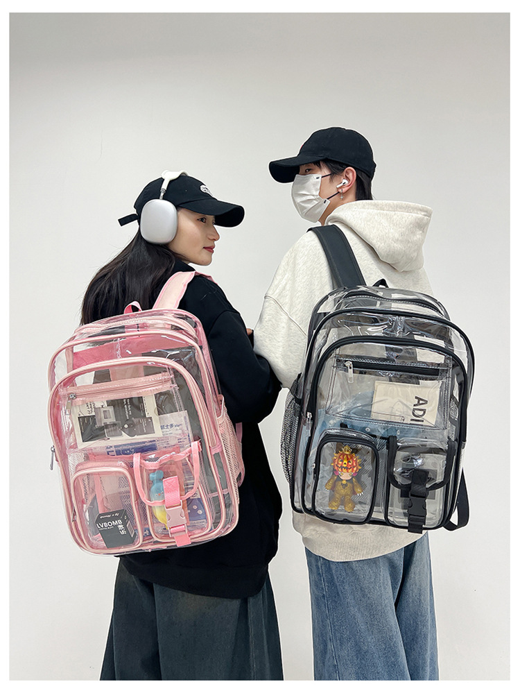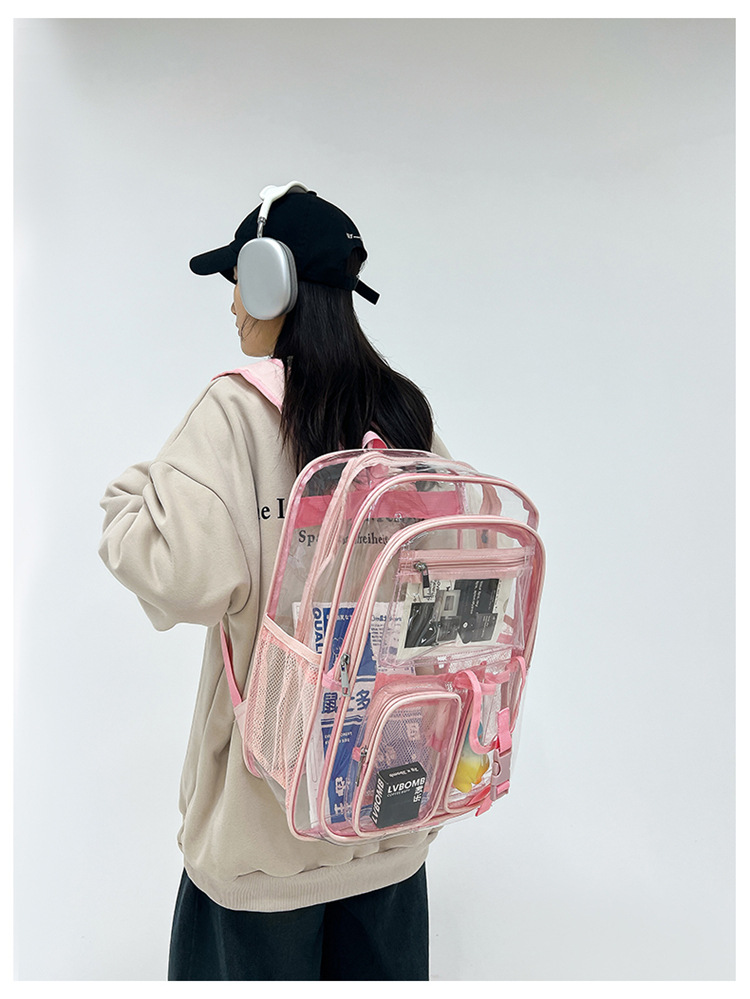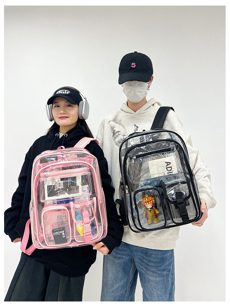 대용량 국경 투명 배낭 여성 대학생 야외 여행 가방 PVC 투명 방수 배낭
