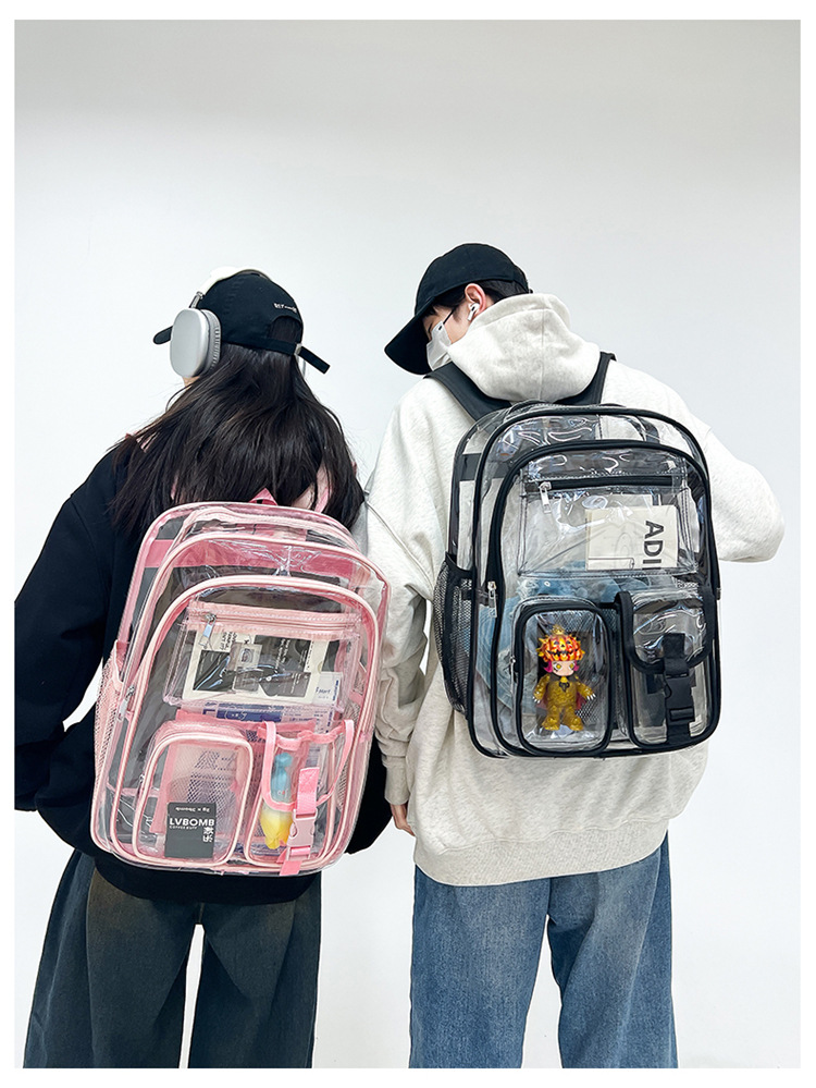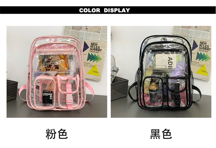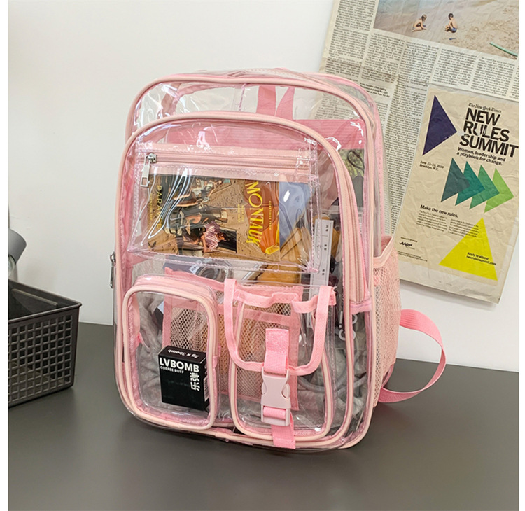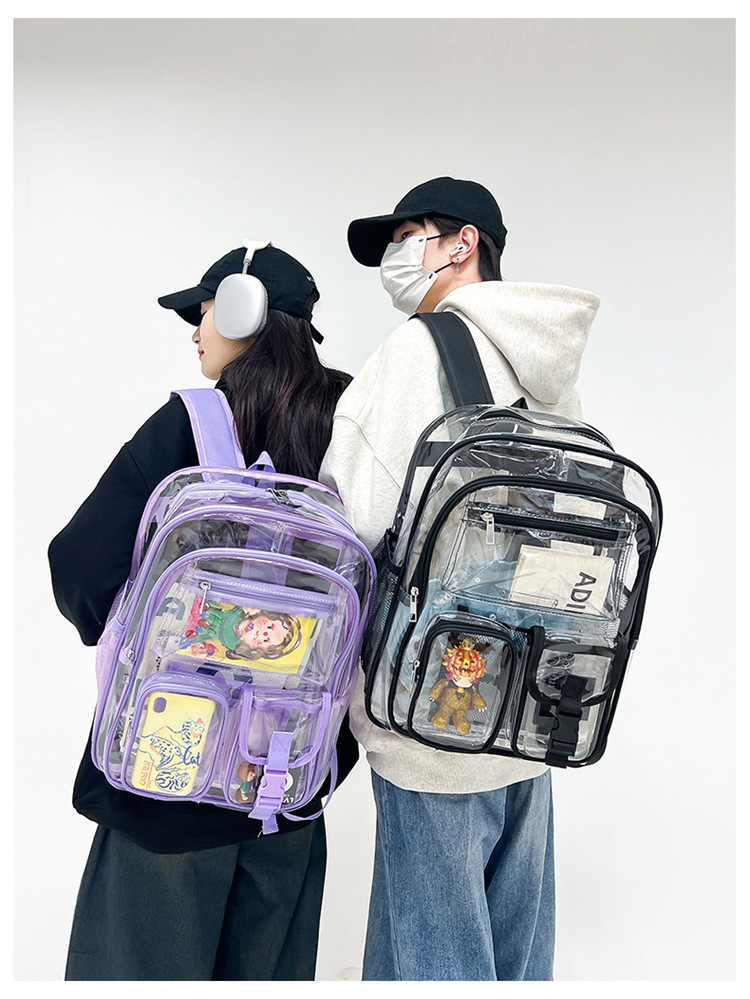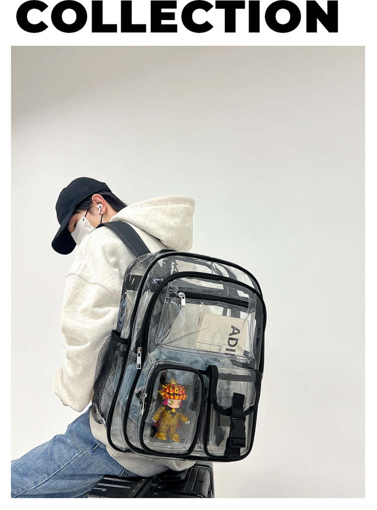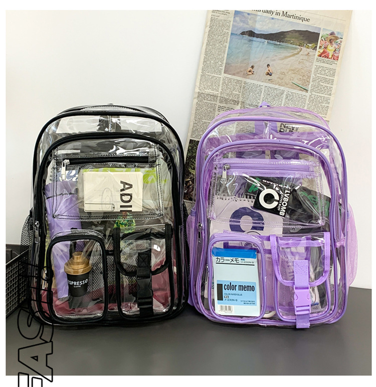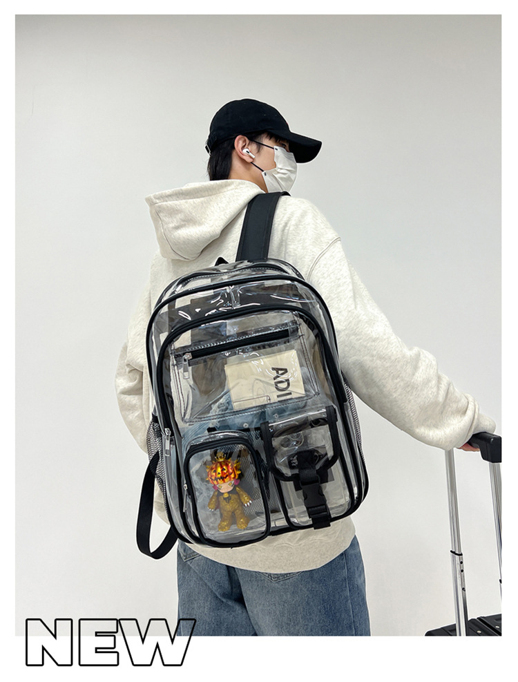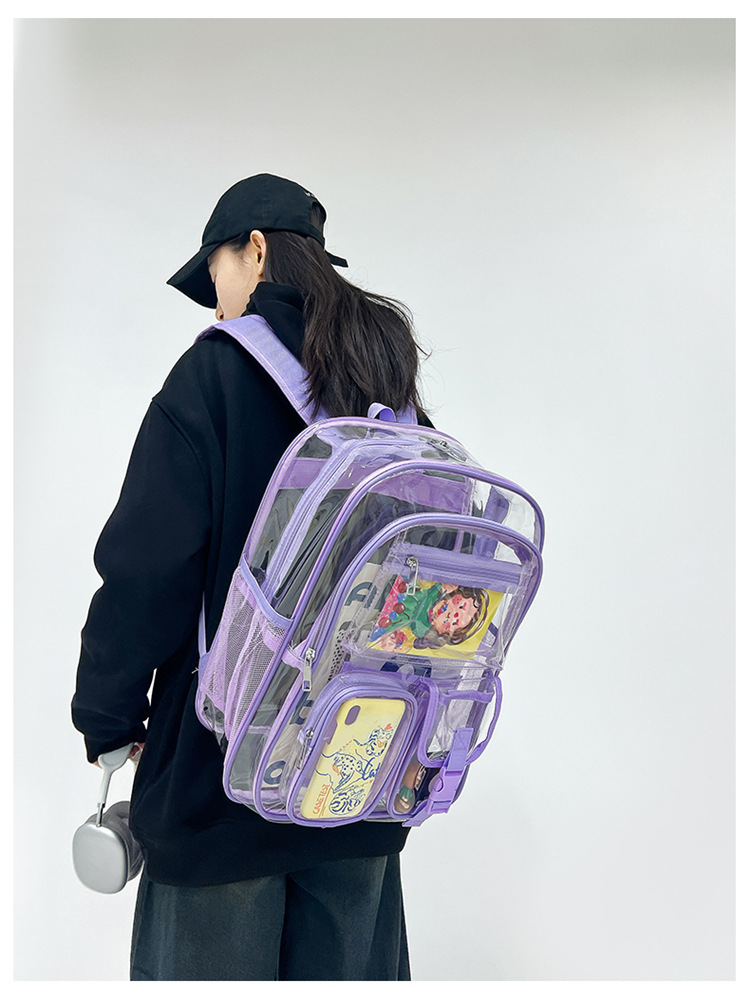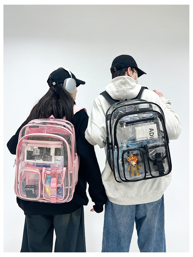 대용량 국경 투명 배낭 여성 대학생 야외 여행 가방 PVC 투명 방수 배낭