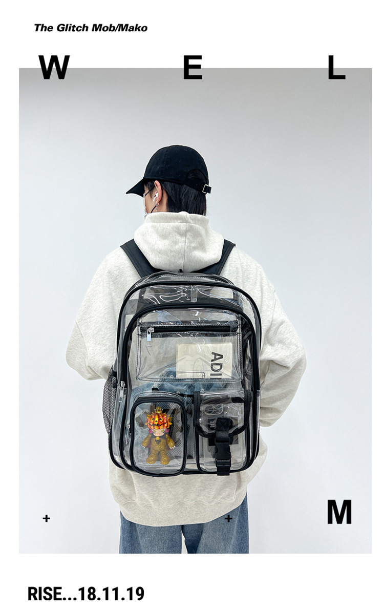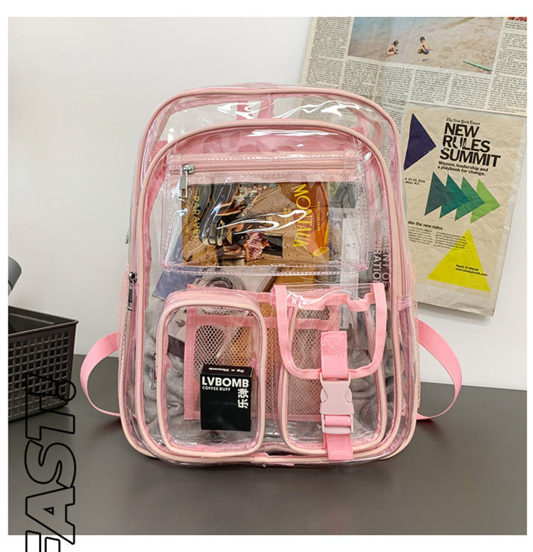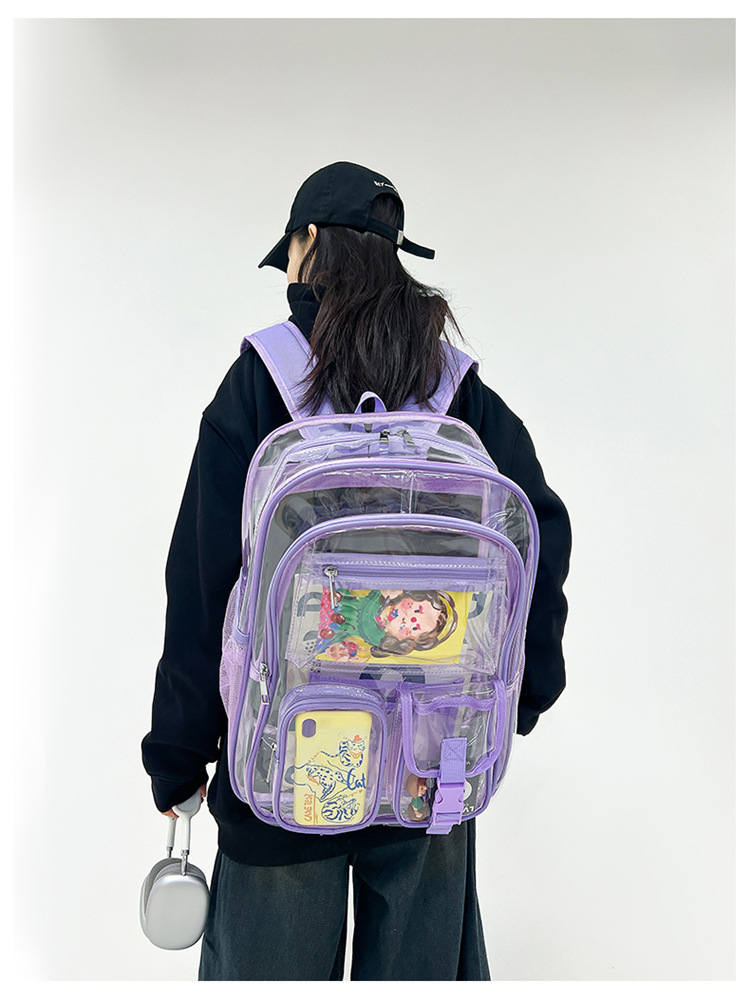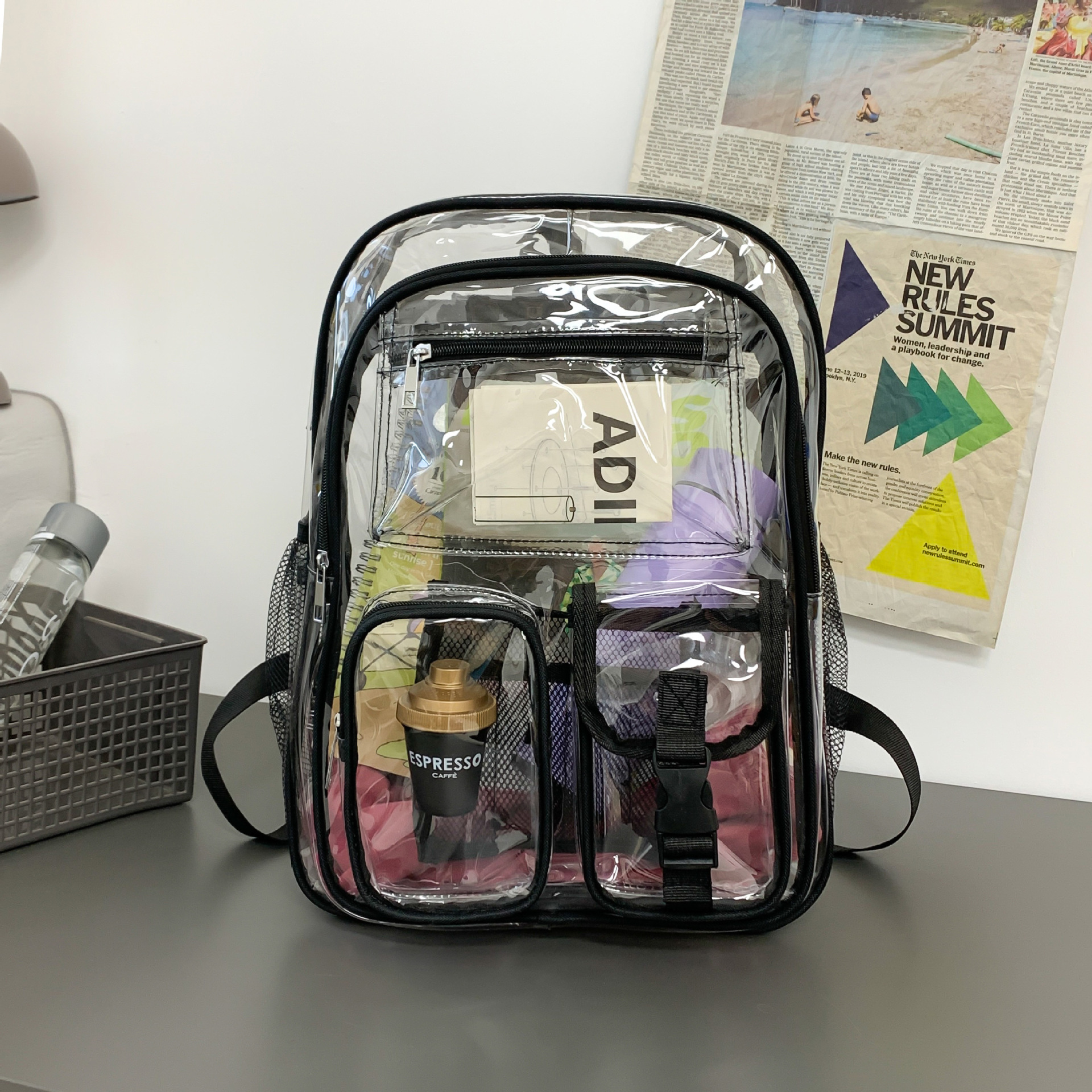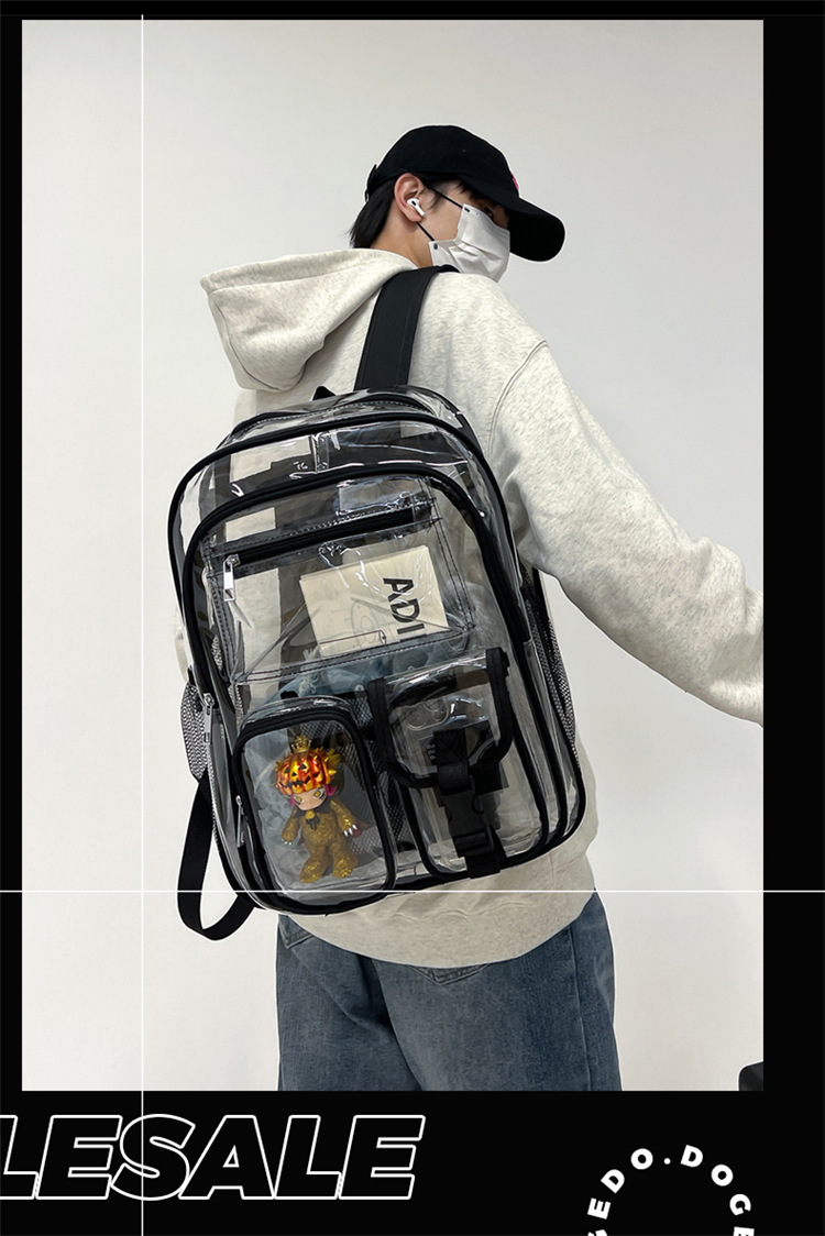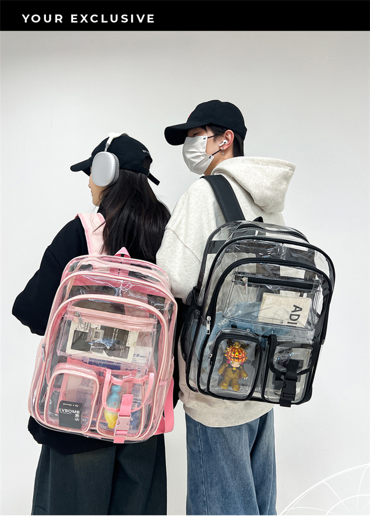 대용량 국경 투명 배낭 여성 대학생 야외 여행 가방 PVC 투명 방수 배낭
