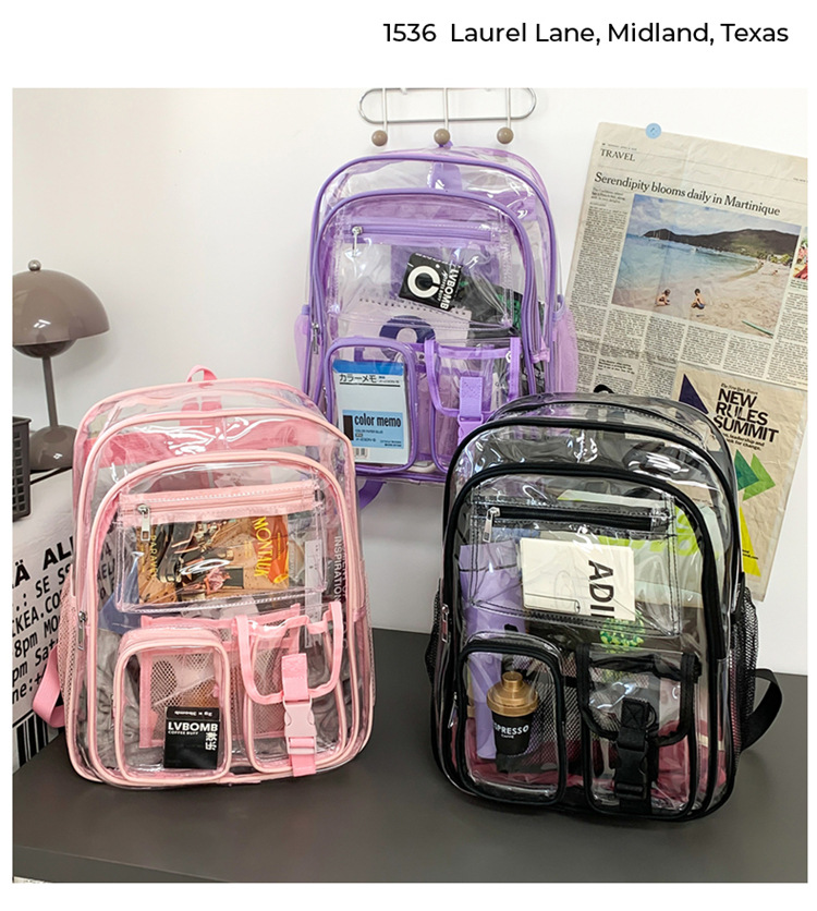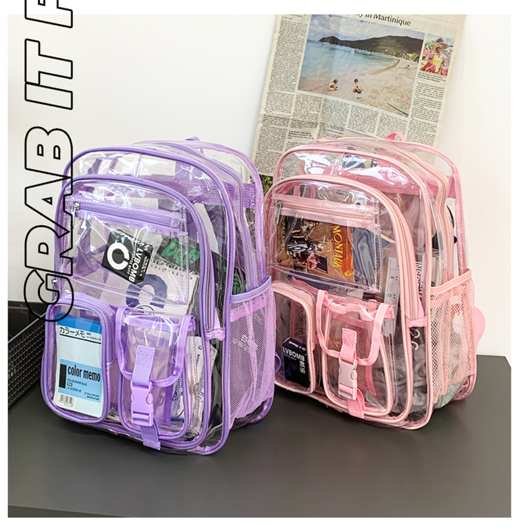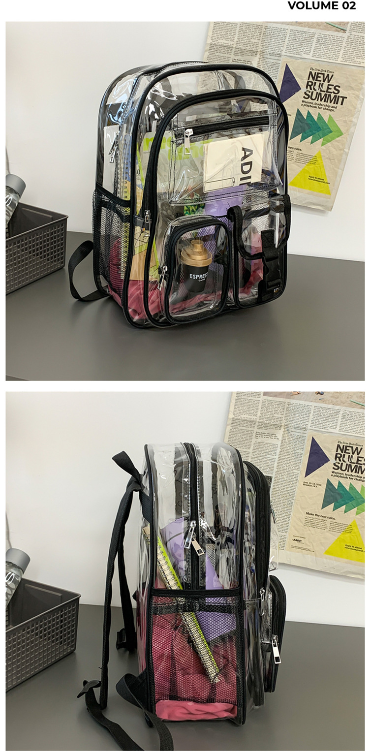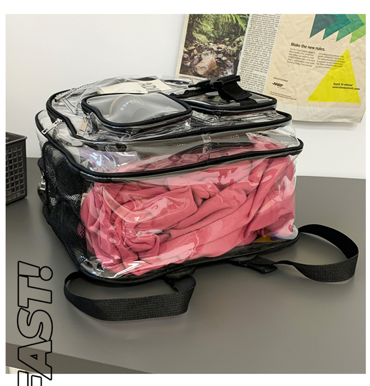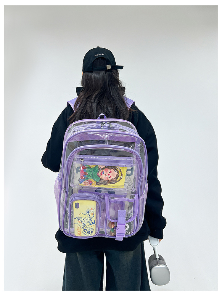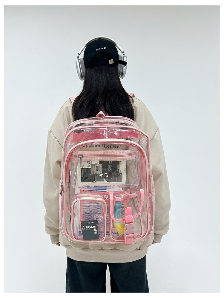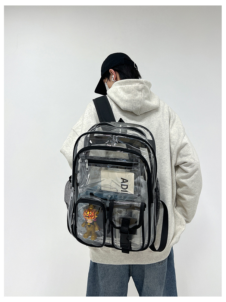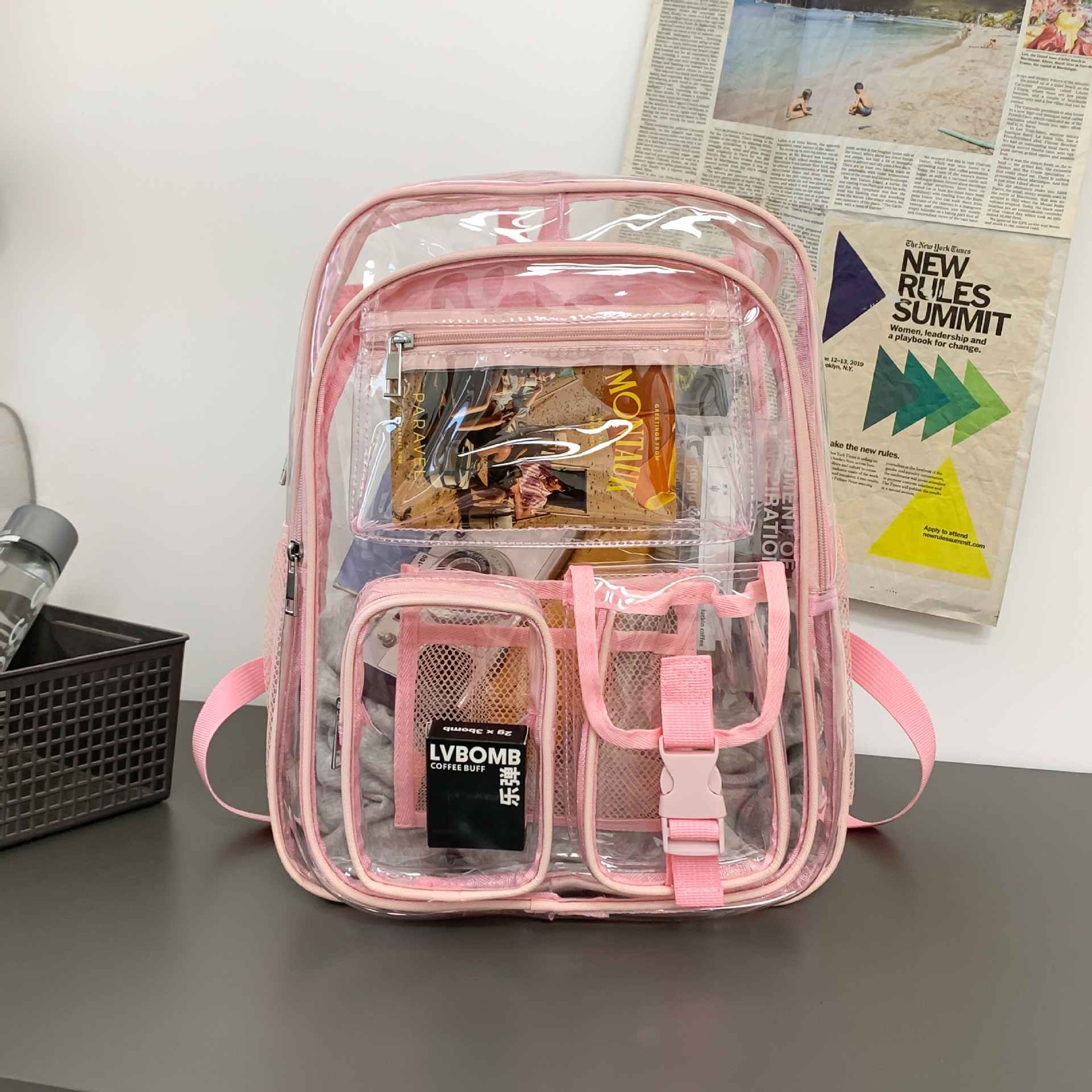 대용량 국경 투명 배낭 여성 대학생 야외 여행 가방 PVC 투명 방수 배낭