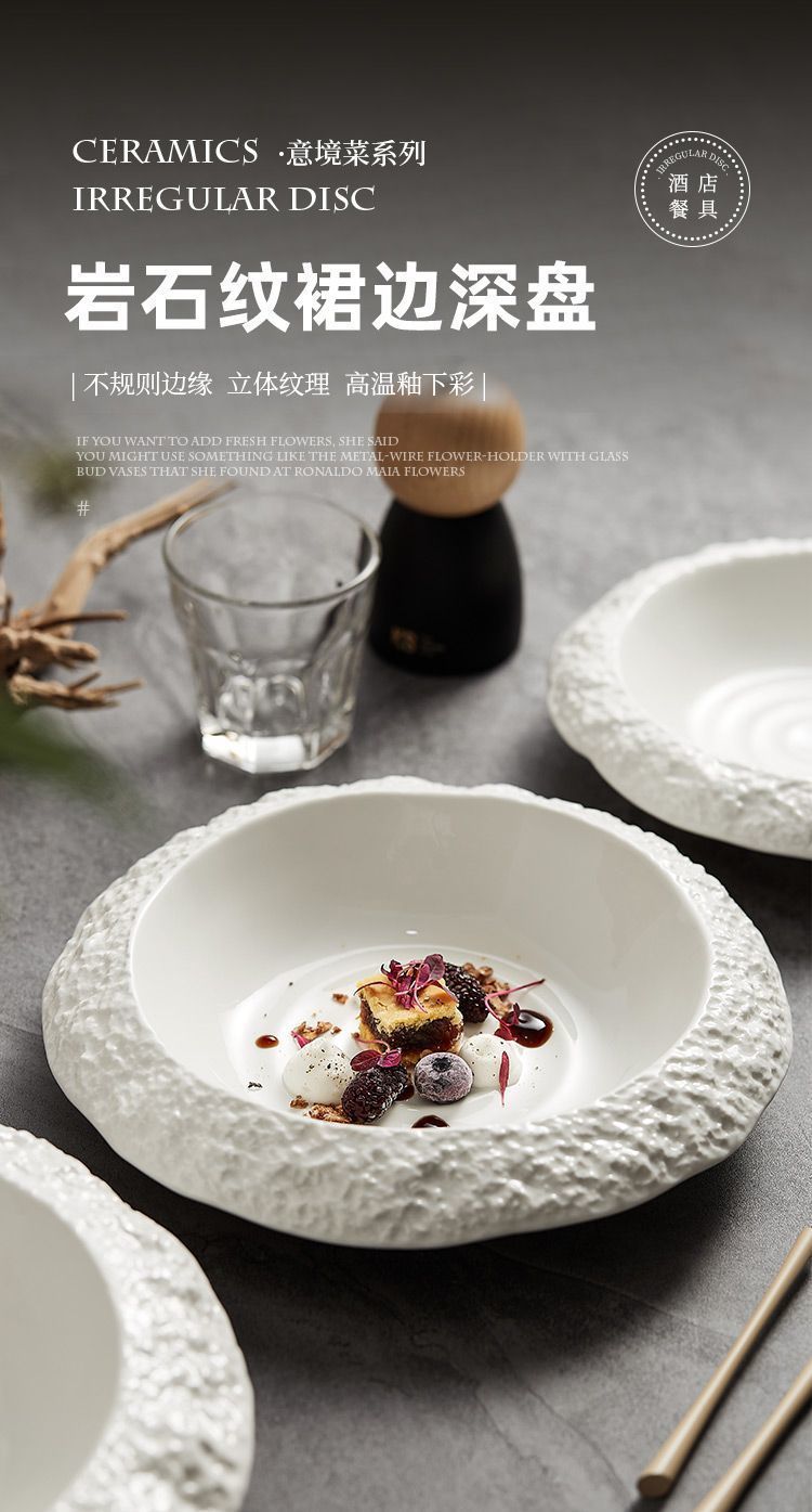 록 패턴 세라믹 플레이트 가정용 딥 플레이트 접시 크리에이티브 호텔 레스토랑 식기 프리미엄 화이트 디너 플레이트 수프 플레이트스토어 가기