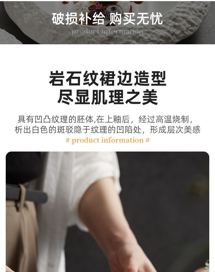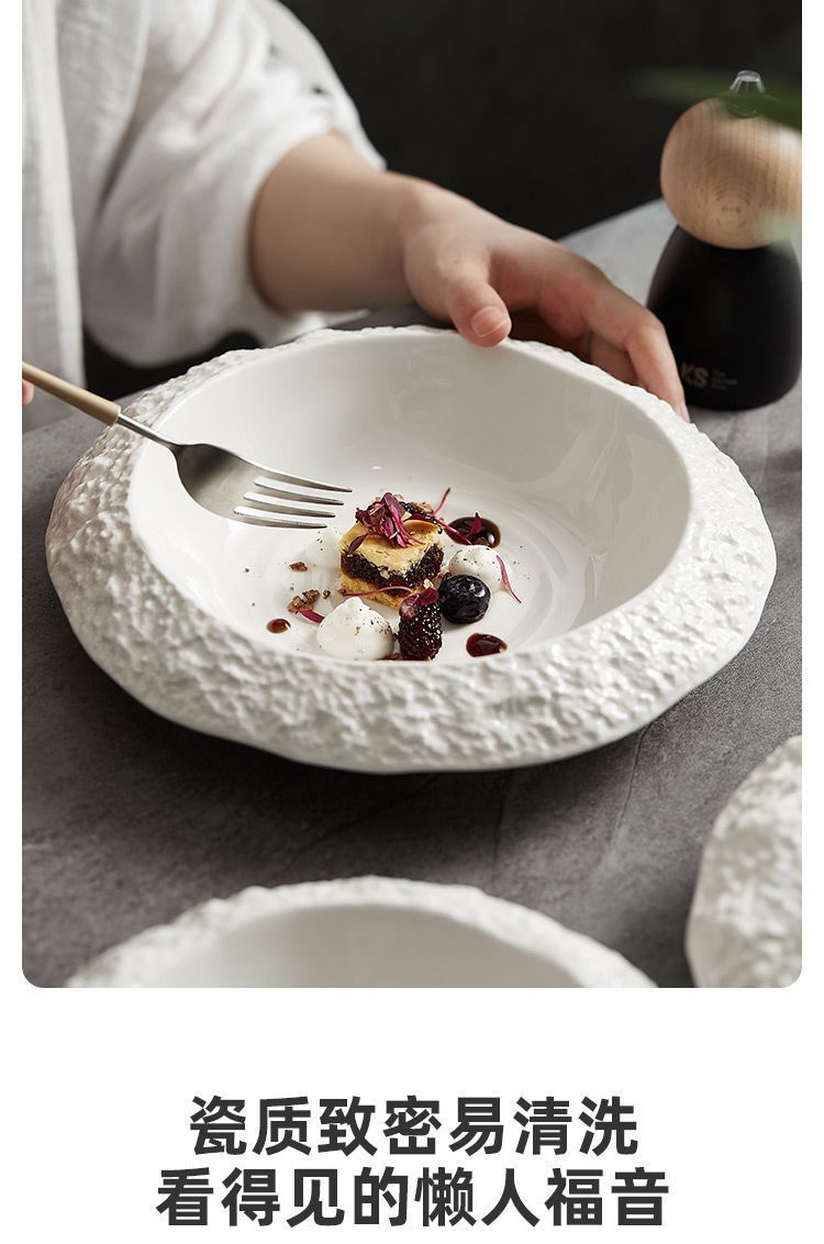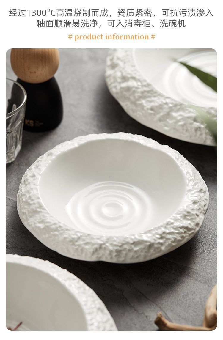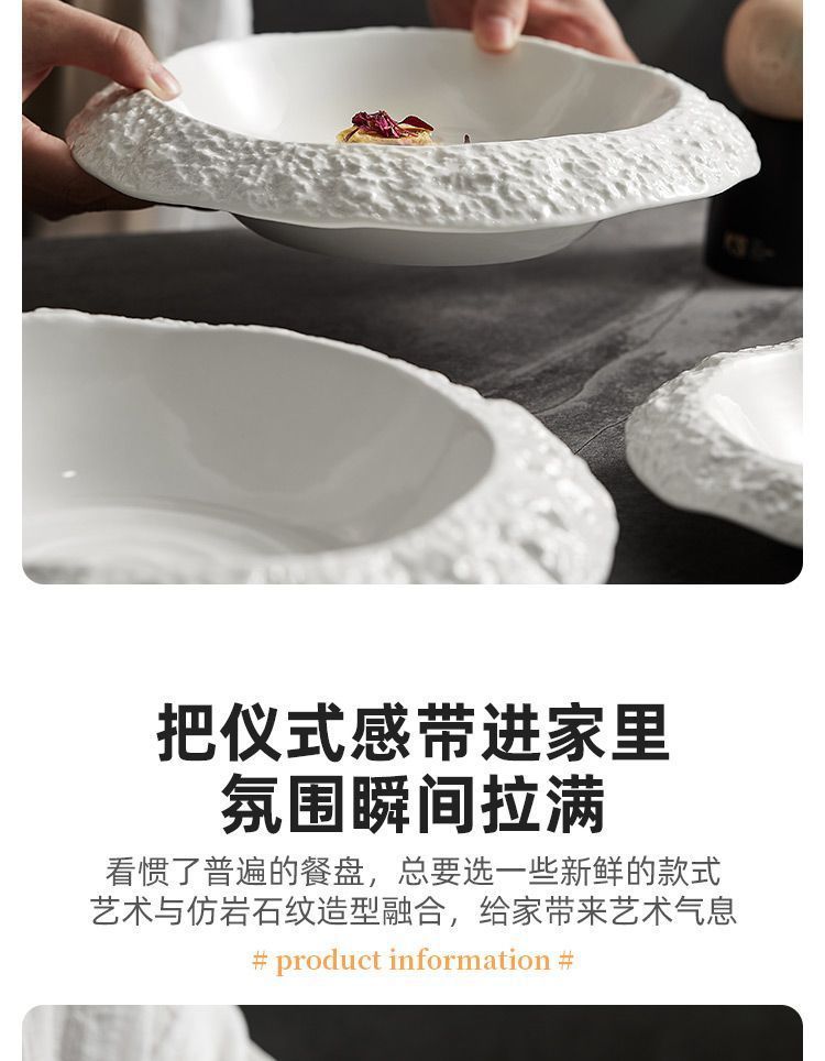 록 패턴 세라믹 플레이트 가정용 딥 플레이트 접시 크리에이티브 호텔 레스토랑 식기 프리미엄 화이트 디너 플레이트 수프 플레이트