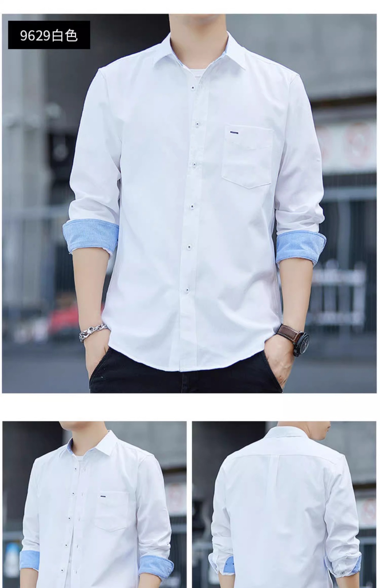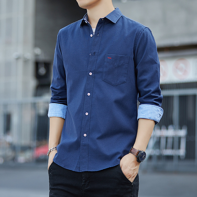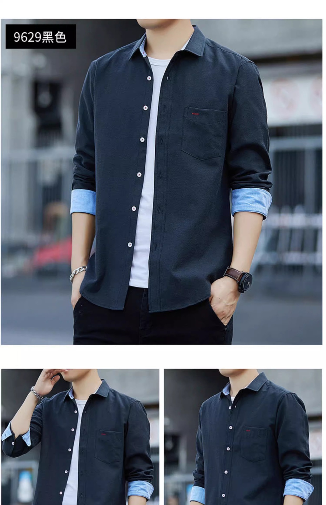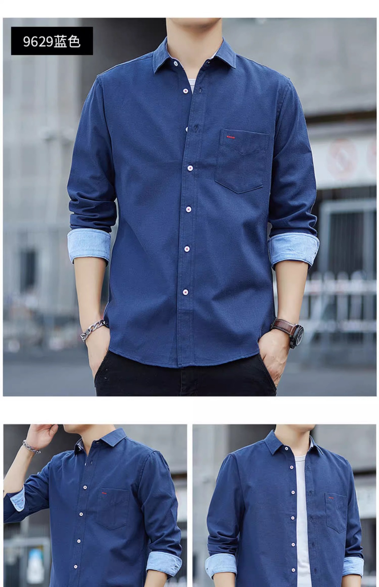 딱따구리 새 남성 긴팔 셔츠 사업 슬림핏 기모 두꺼운 캐주얼 셔츠 남성용 루즈 탑
