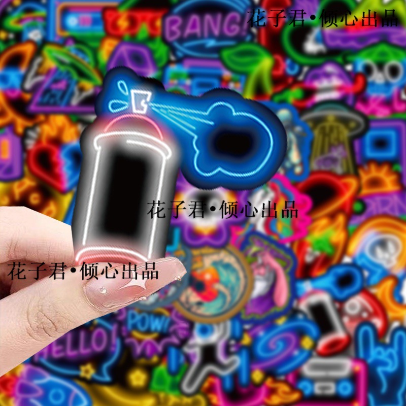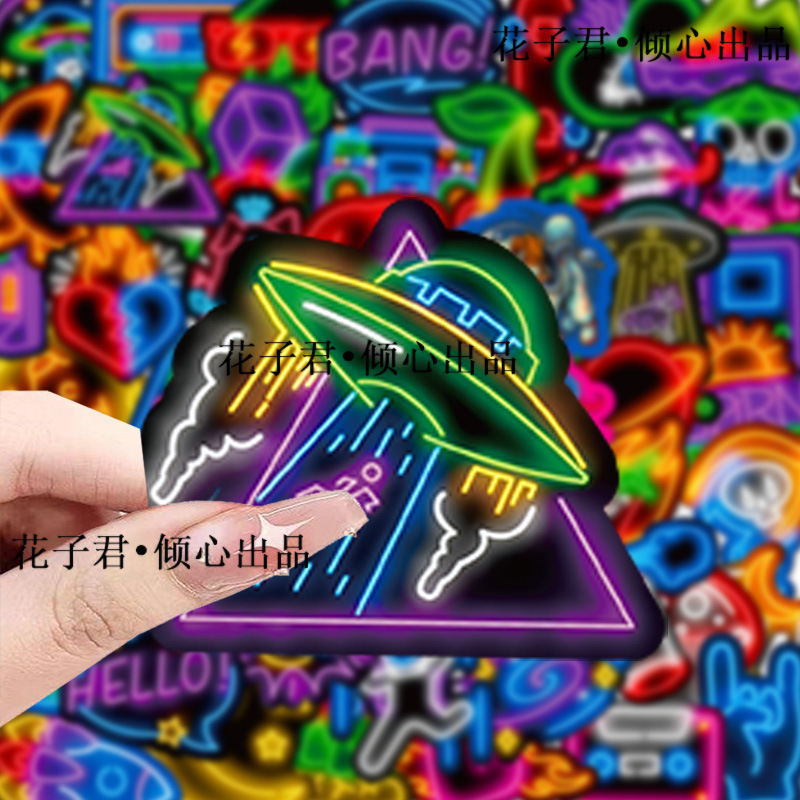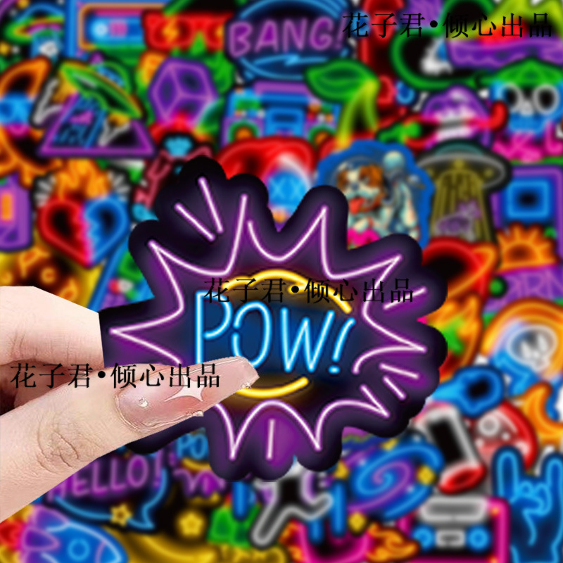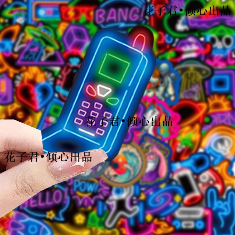 슈퍼 비용 효율적인 100 네온 스티커 멋진 성격 DIY 컴퓨터 손 계정 스케이트 보드 휴대 전화 케이스 배치스토어 가기