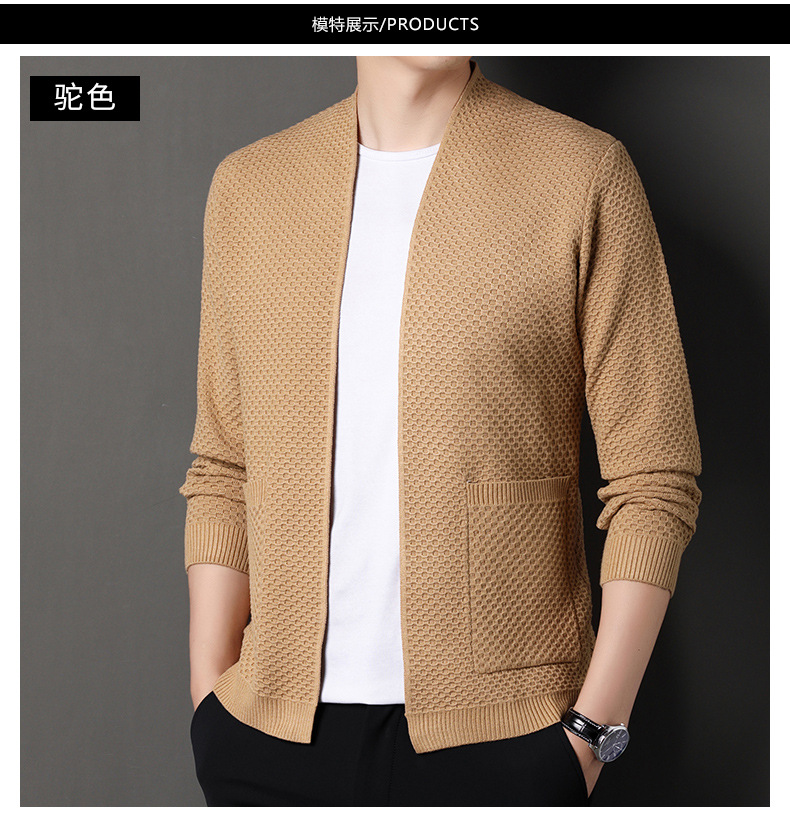 2024 가을 새로운 남성 물고기 규모 카디건 니트 재킷 중년 남성 느슨한 캐주얼 스웨터 얇은 재킷