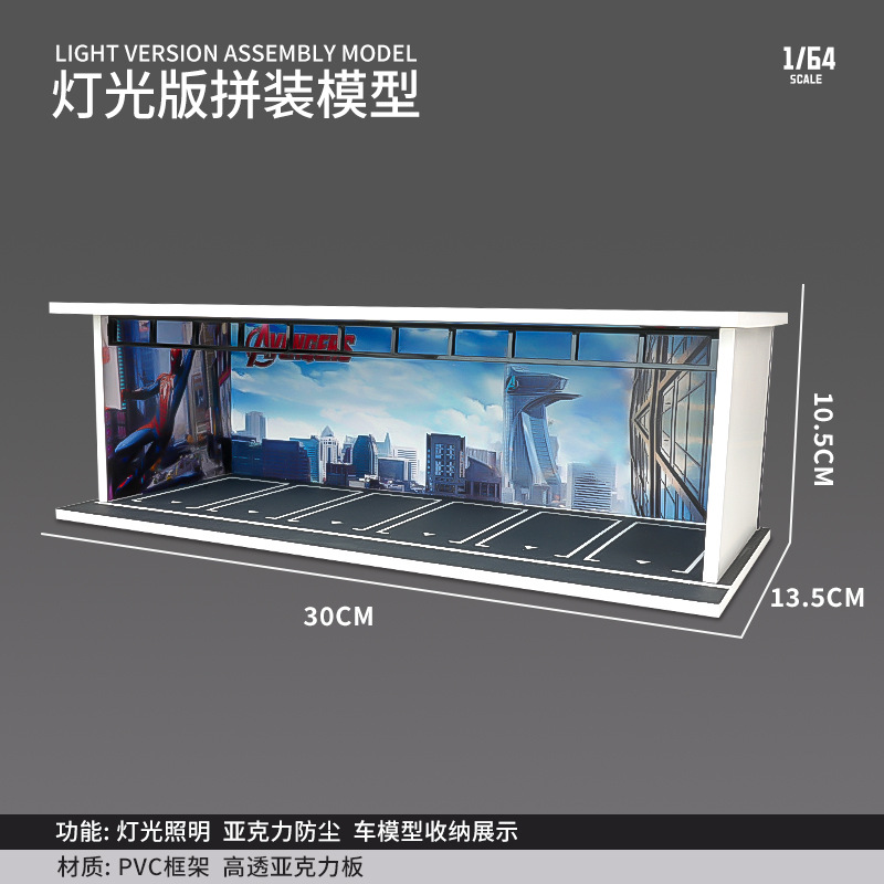 【产品名称】:停车场场景模型汽车模型停车场沙盘模型带灯光亚克力罩拍摄专用(多款可选可混)