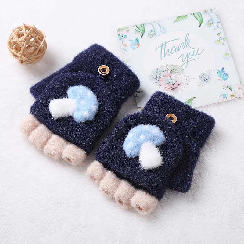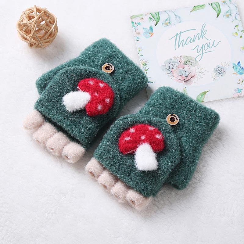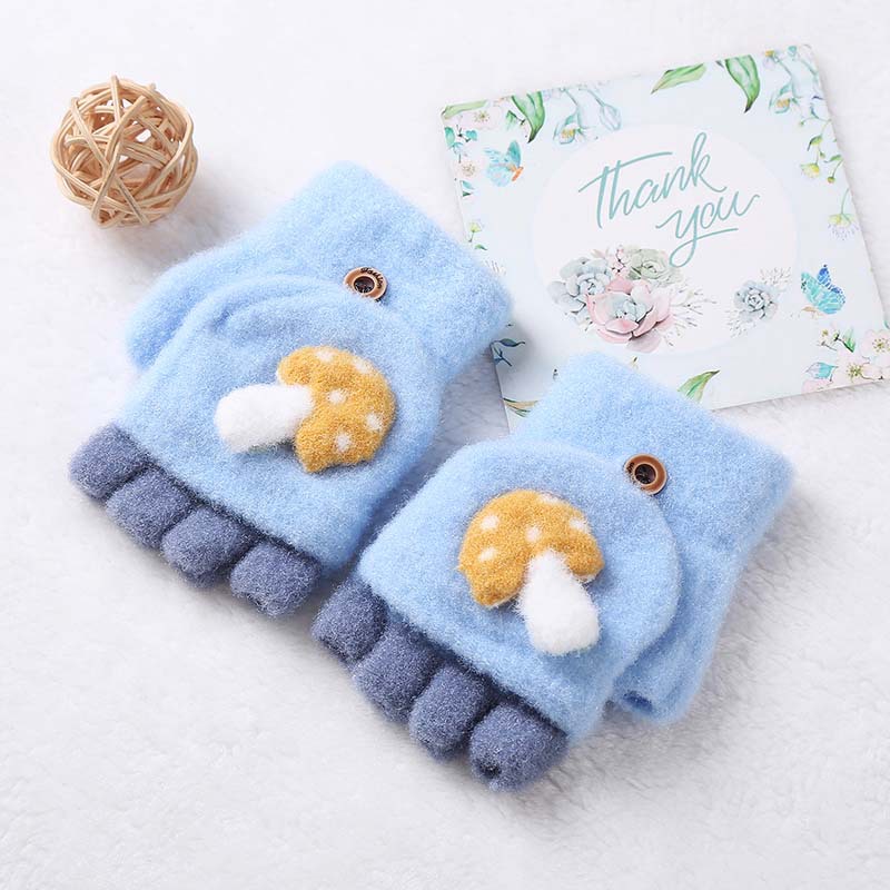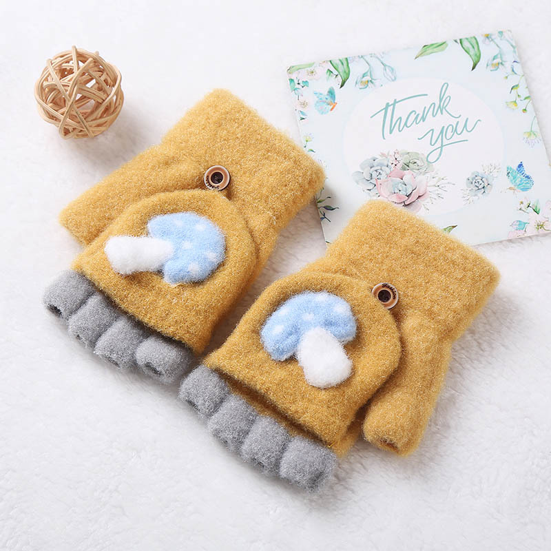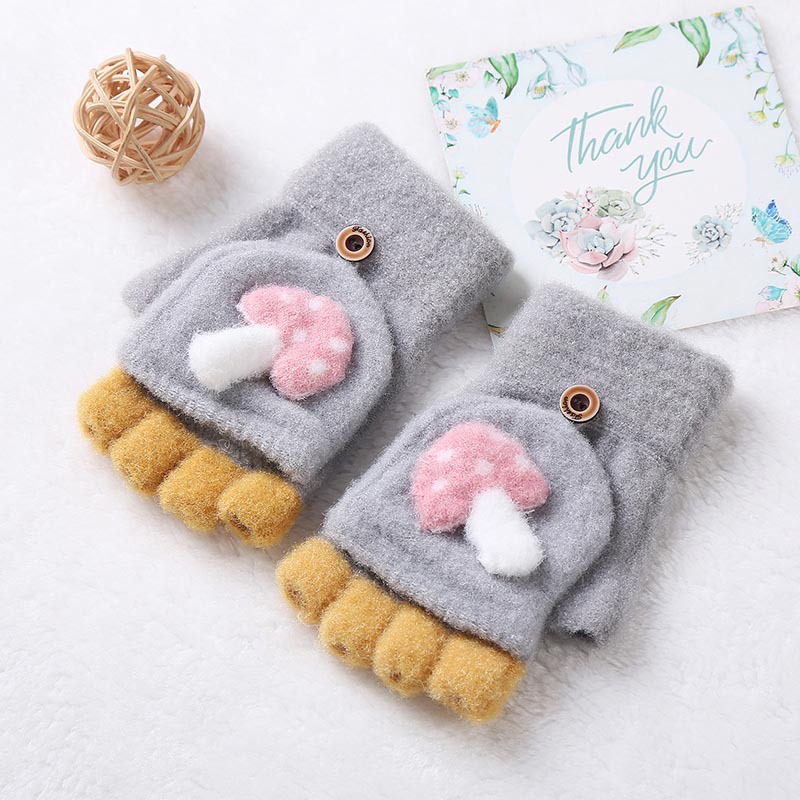 무료 배송 어린이용 플립업 장갑, 남아용 겨울철 보온 두꺼운 반손가락 글쓰기용 장갑, 여아용 버섯 모양 손가락 분리형 장갑
