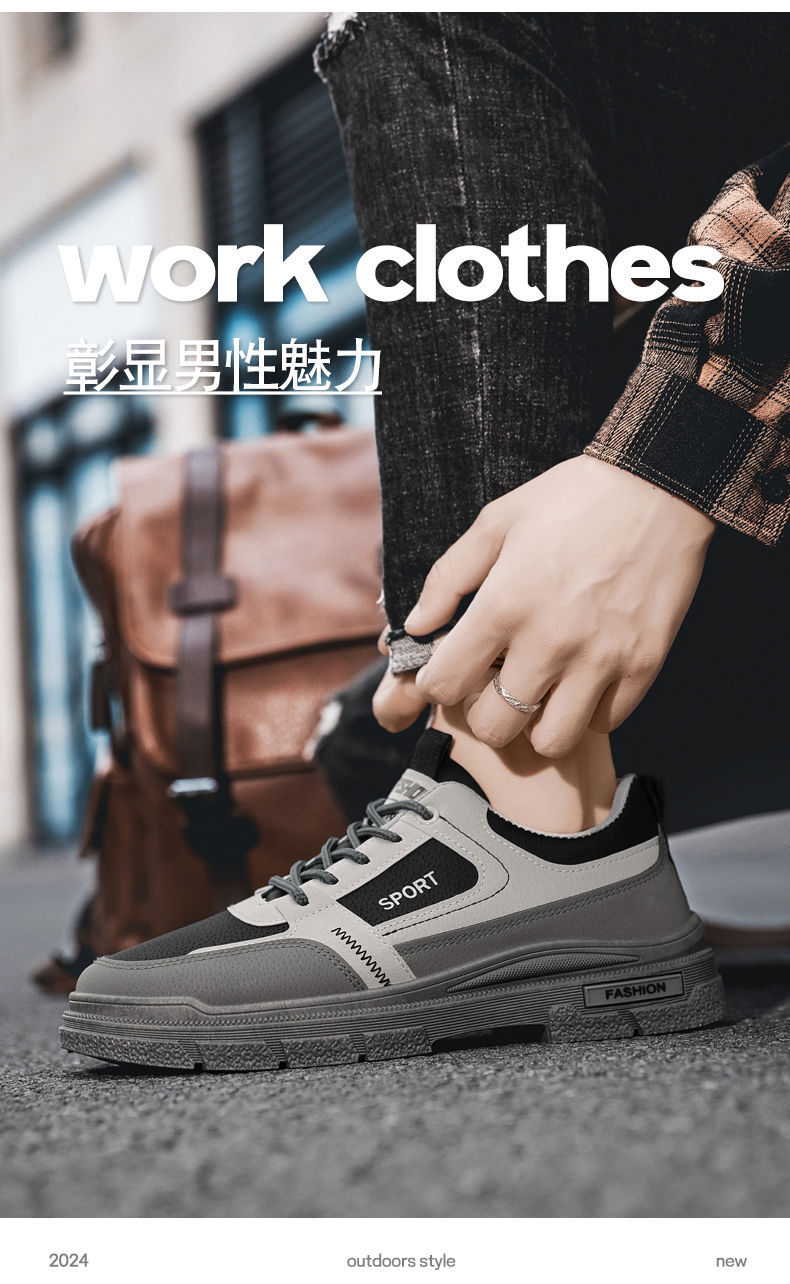 남성용 가을 통기성 신발 2025년 신상 트렌디 다용도 캐주얼 스니커즈 남성용 로우탑 워크웨어 가죽 마틴 부츠스토어 가기