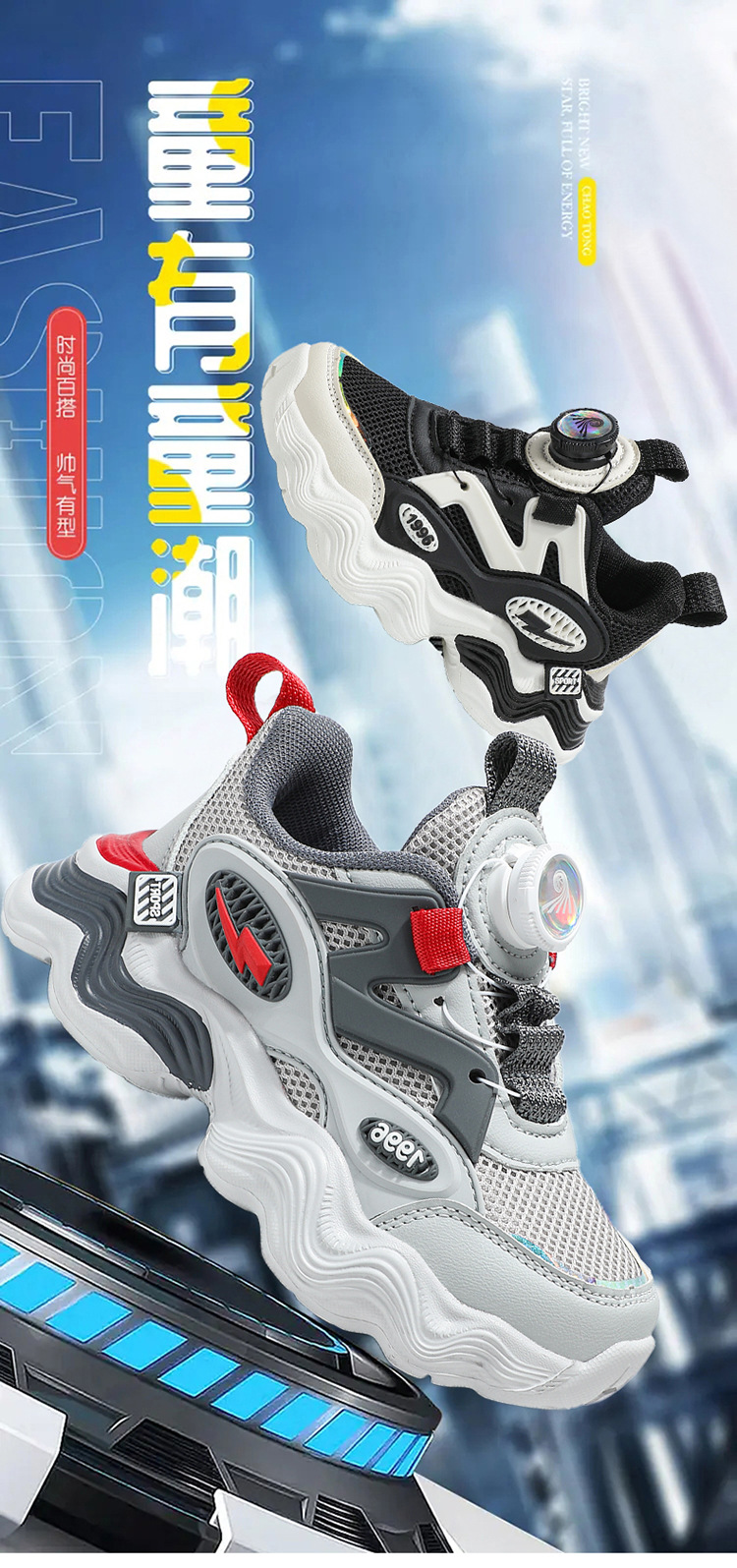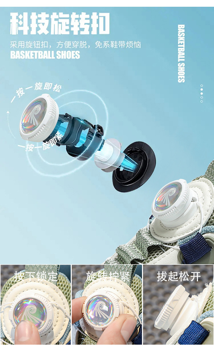 BD-LDZ928 봄 신상품 통기성 이중 메쉬 회전 버클 운동화, 중대형 어린이를 위한 내마모성 경량 운동화스토어 가기