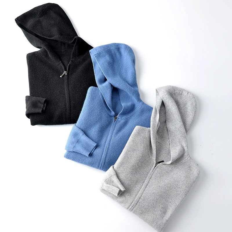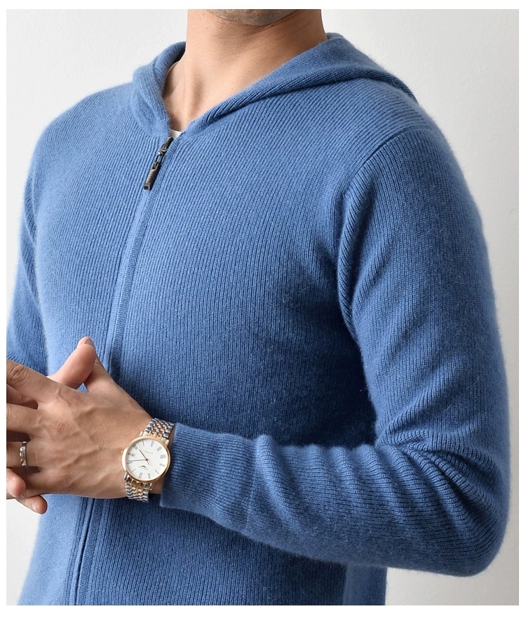 국경 간 가을과 겨울 새로운 고급 남성 청소년 지퍼 니트 카디건 스웨터 단색 후드 스웨터 스웨터 스웨터 스웨터