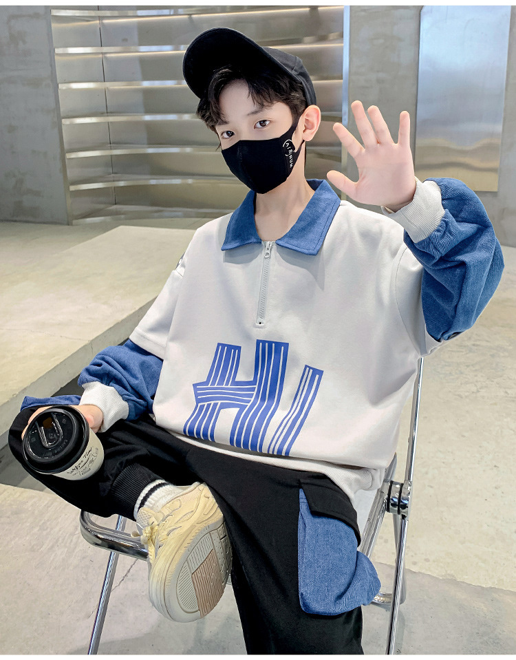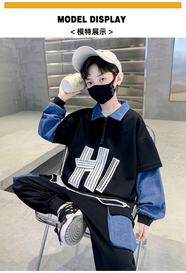 어린이 착용 소년 가을 착용 세트 2023 새로운 봄과 가을 스타일 큰 소년의 후드 잘 생긴 두 조각 유행 세트스토어 가기